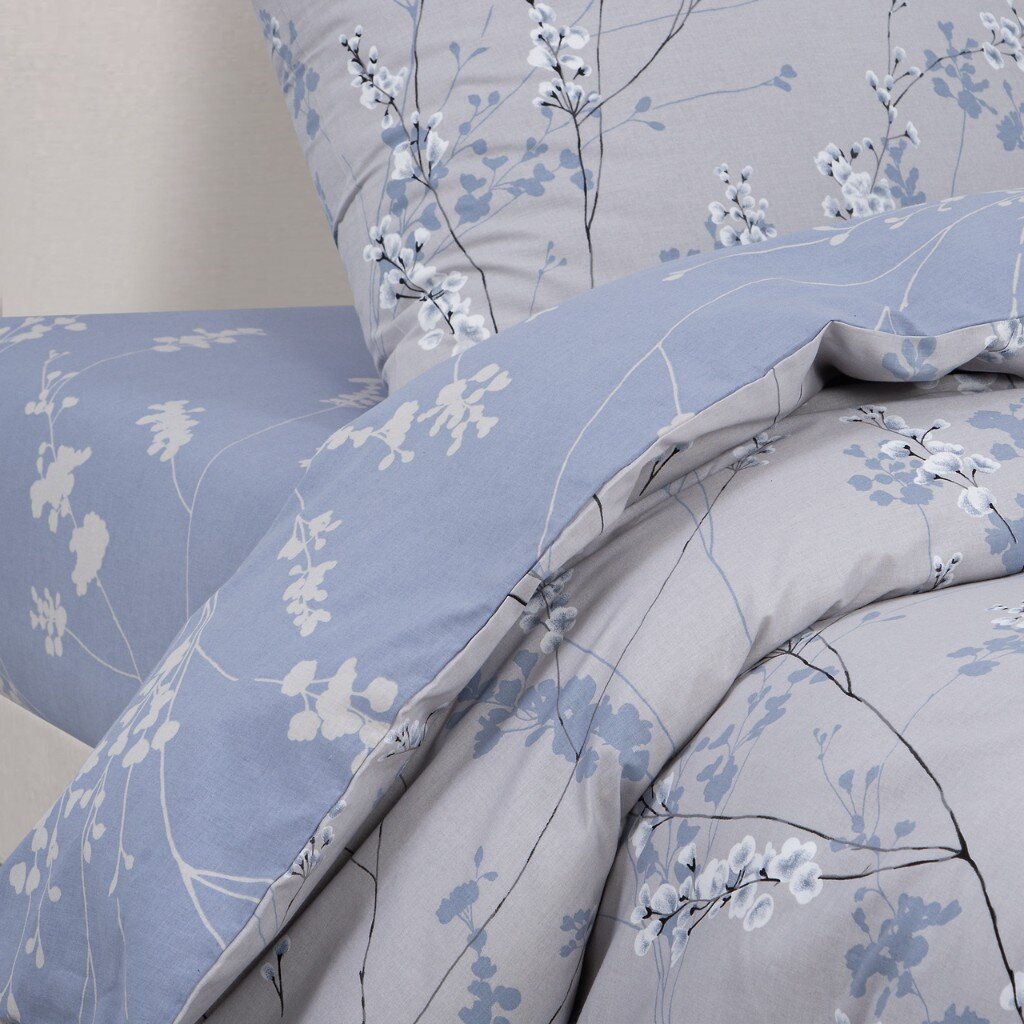 В комплекте: две наволочки 70×70 см, две пододеяльника 145×215 см, простыня 180×200 см на резинке. Материал — прочный хлопковый поплин.