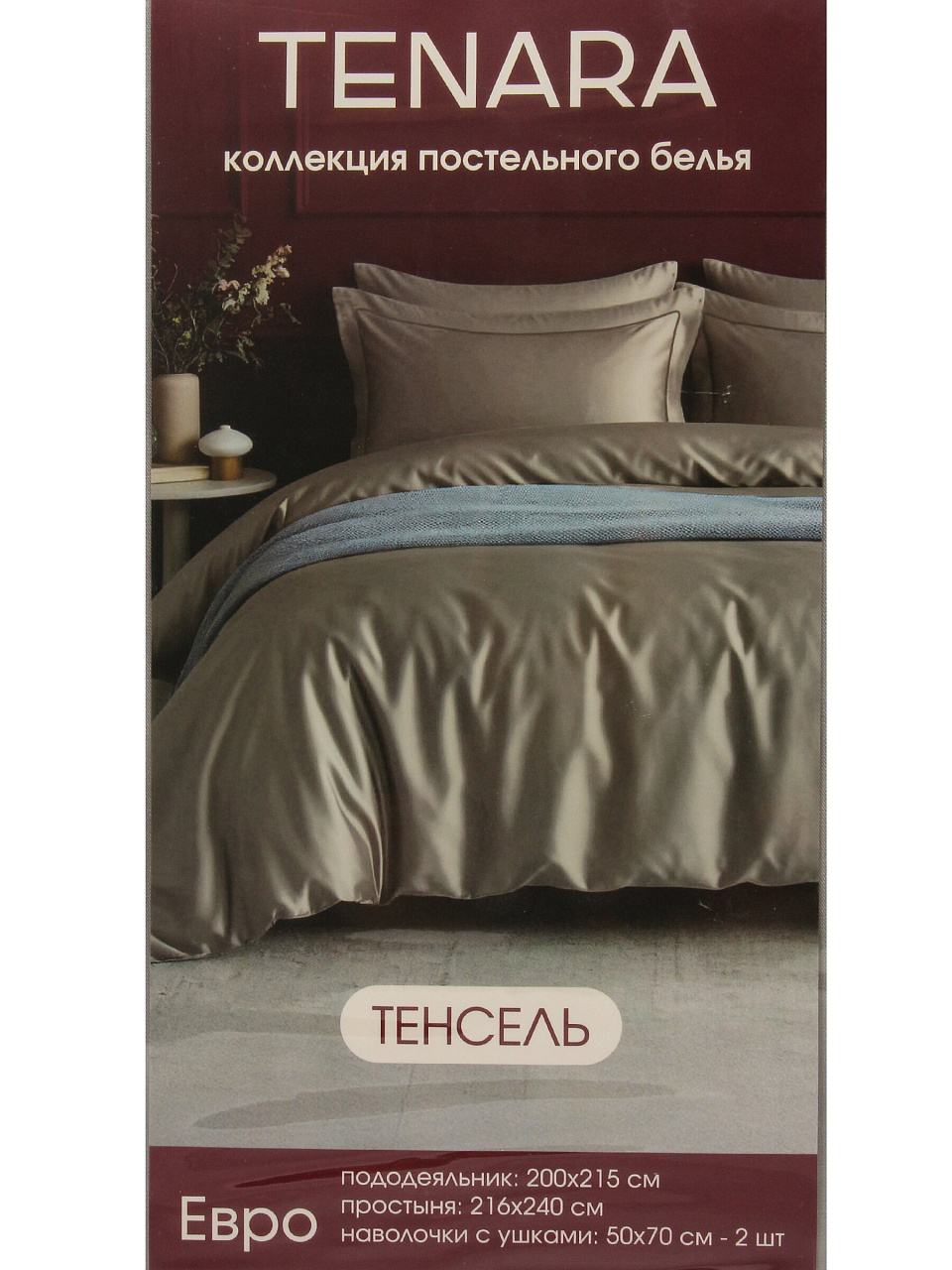 Постельное белье евро TENARA Палома из тенселя: премиальный комфорт, долговечность и стиль в сером цвете для вашего сна. Подарочная упаковка — идеальный выбор для подарка.