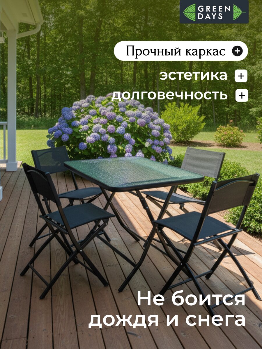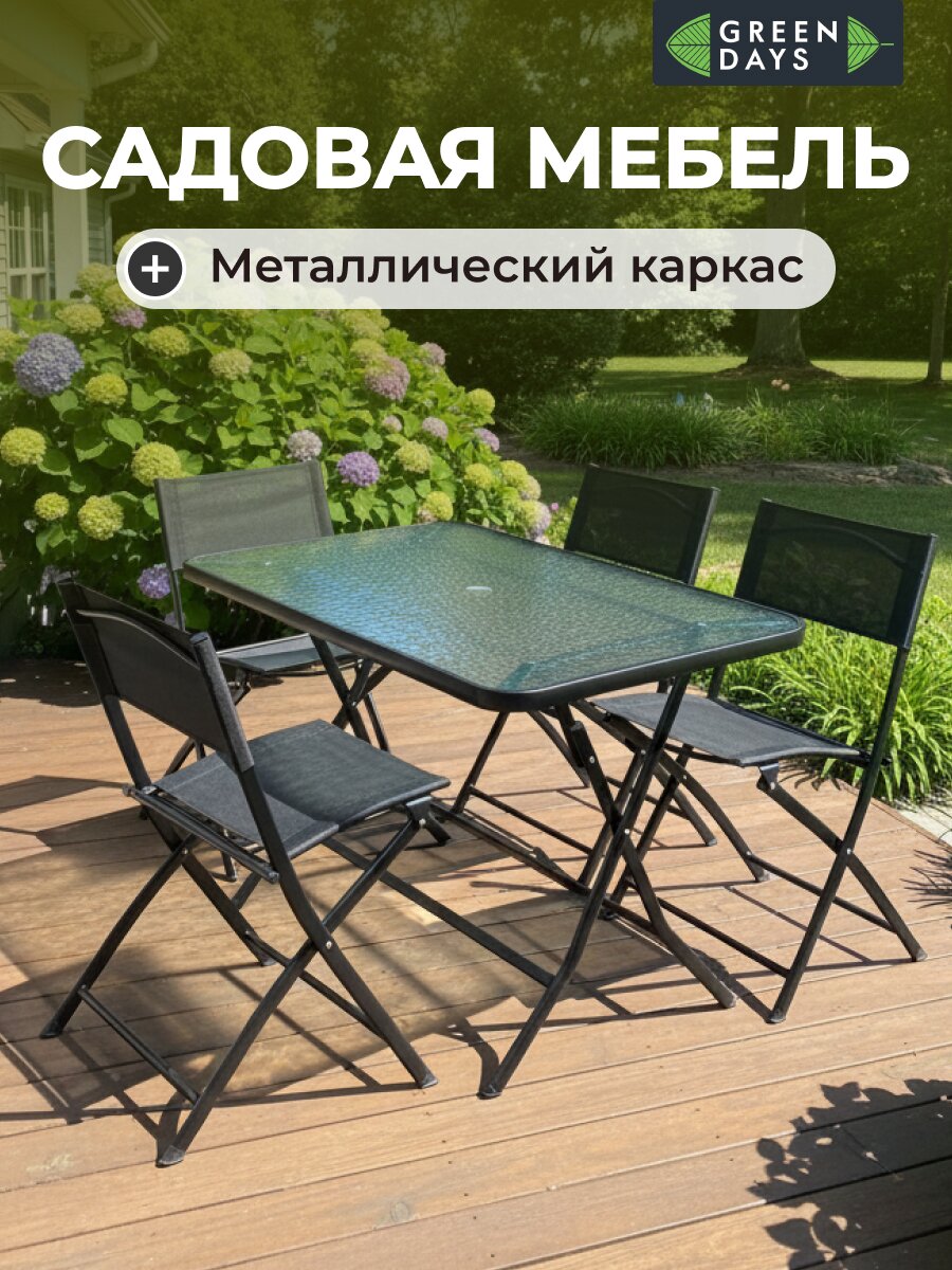 Комплект садовой мебели Green Days - это не просто набор предметов интерьера, это настоящий оазис уюта и комфорта, который позволит вам насладиться теплыми летними вечерами в кругу семьи и друзей. Удобные стулья и большой стол обеспечат достаточно места для всех, а стильный дизайн добавит вашему саду неповторимую атмосферу спокойствия и безмятежности.