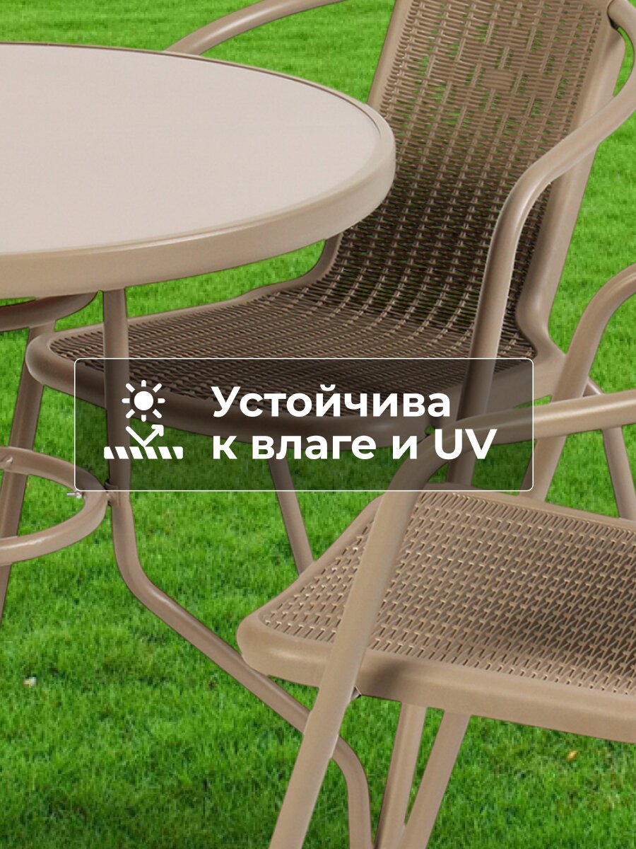 Комплект Пуэрто NEW — это удачное сочетание функциональности и эстетики. Легкость конструкции облегчает перестановку и хранение, а отсутствие складного механизма обеспечивает дополнительную прочность. Мебель легко очищается от загрязнений, что особенно важно для использования на улице.