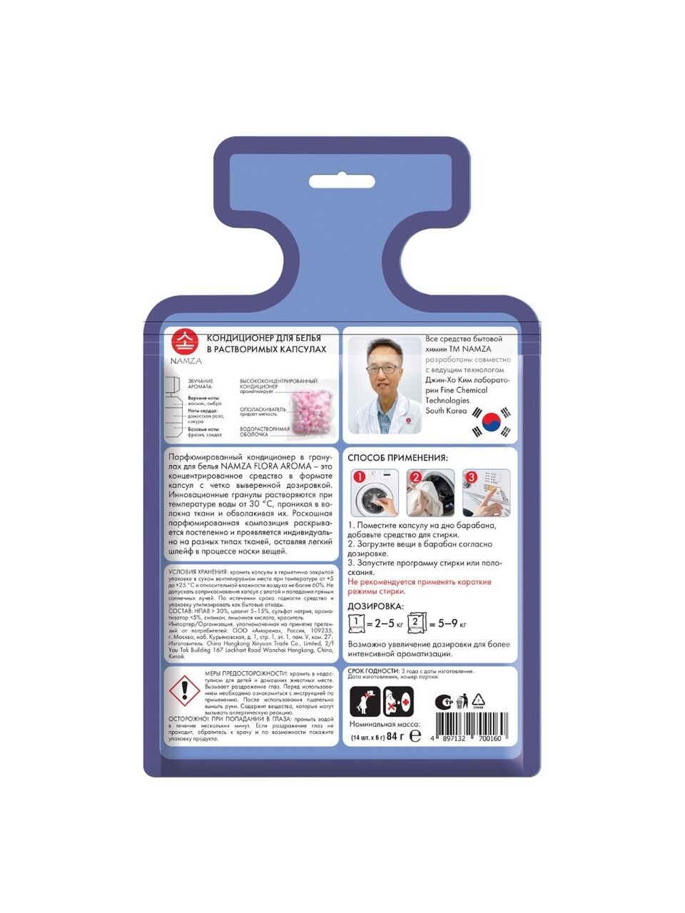 Парфюмированный кондиционер в гранулах для белья Namza Сакура – это концентрированное средство в формате капсул с четко выверенной дозировкой. Инновационные гранулы растворяются при температуре воды от 30°С, проникая в волокна ткани и обволакивая их. Роскошная парфюмированная композиция раскрывается постепенно и проявляется индивидуально на разных типах тканей, оставляя легкий шлейф в процессе носки вещей.