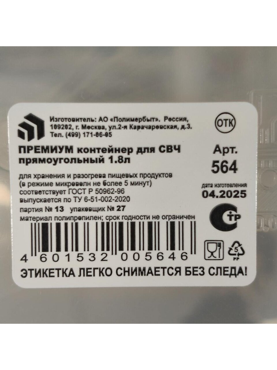 Закажите контейнер Полимербыт Премиум 1.8 л — выгодное предложение для тех, кто ценит свежесть продуктов, удобство и долговечность. Успейте купить недорого с доставкой по России — ваш рацион всегда под контролем.