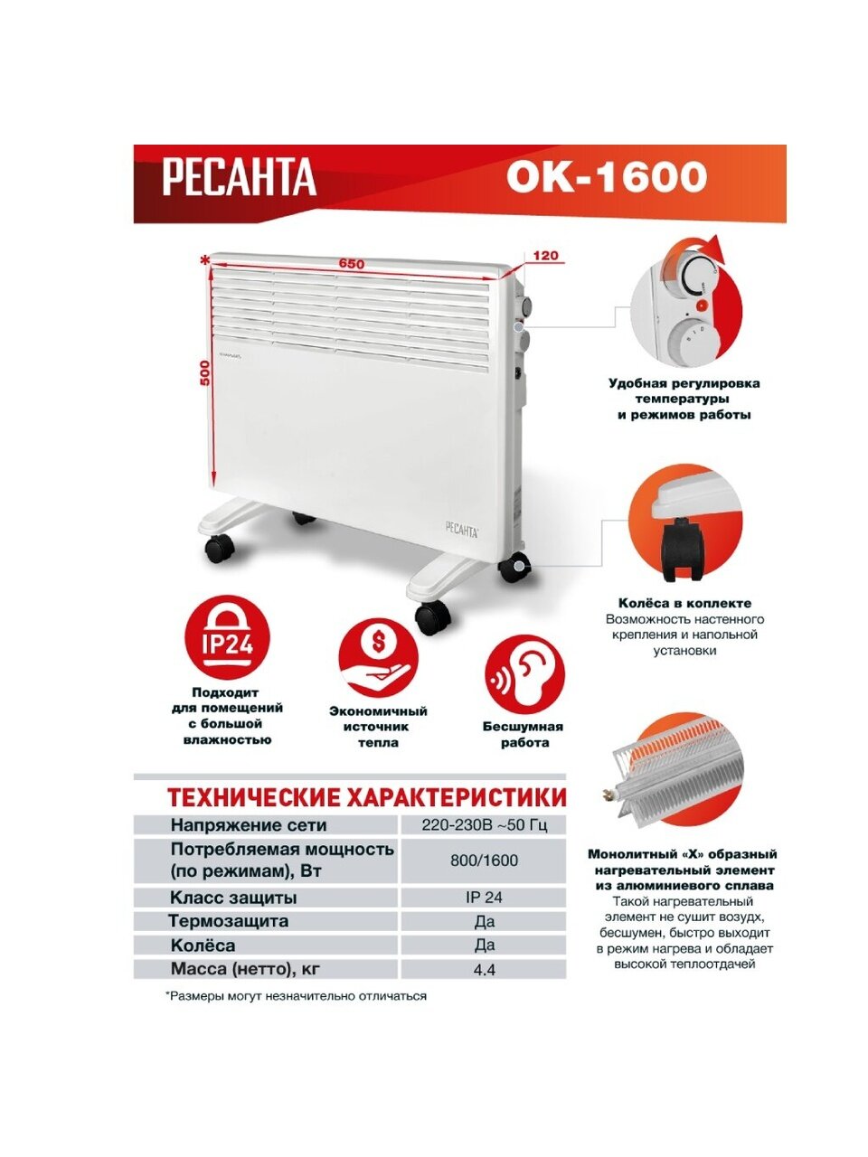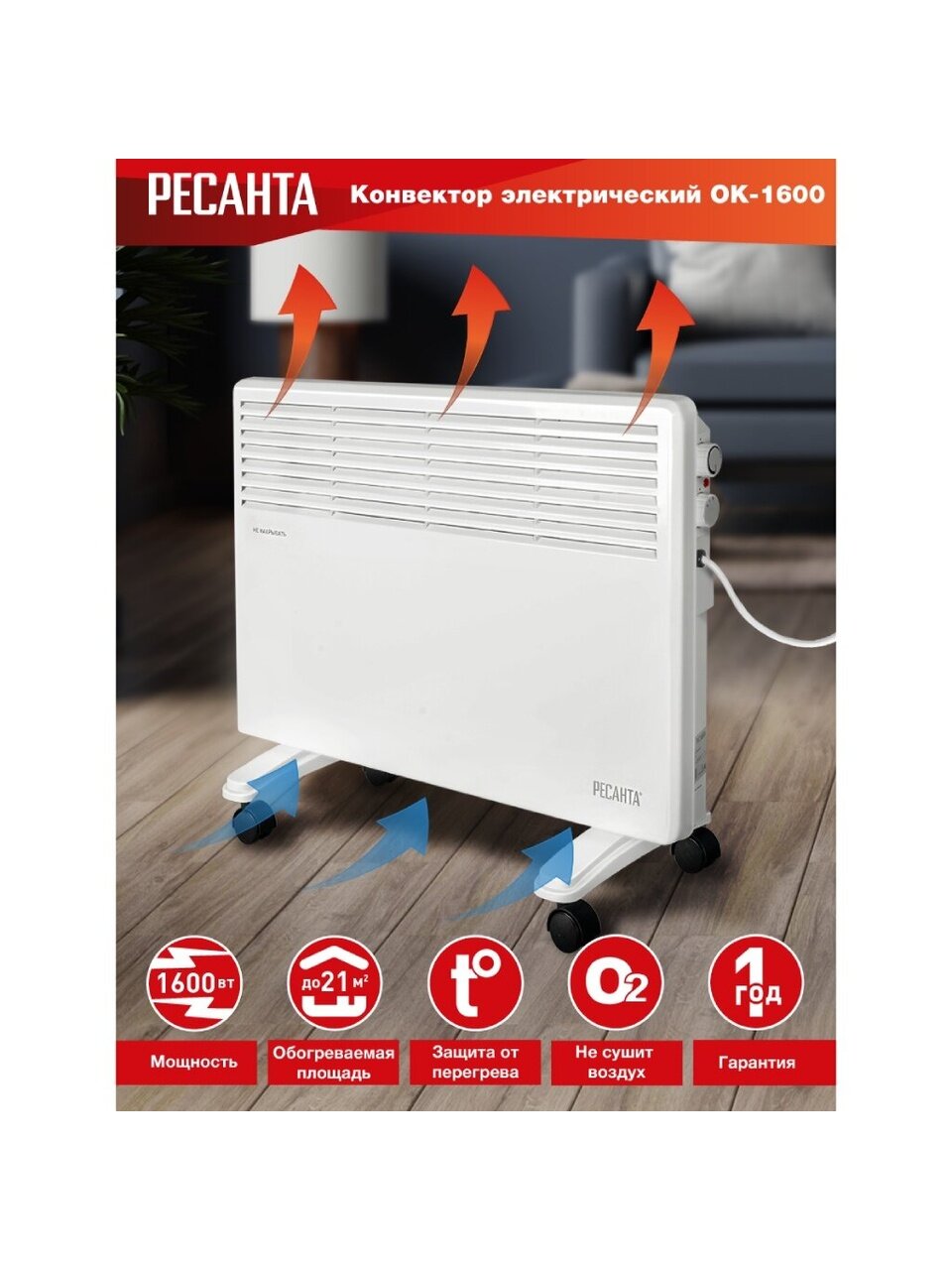 Вы можете приобрести «Конвектор Ресанта, ОК-1600, напольный/настенный, 1.6 кВт, 16 м2, белый, 67/4/2» и другие товары в нашем интернет-магазине в Обнинске по низким ценам и с бесплатным самовывозом.