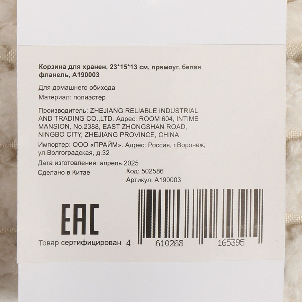 Вы можете приобрести «Корзина для хранения, 23х15х13 см, прямоугольная, фланель, белая, A190003» и другие товары в нашем интернет-магазине в Липецке по низким ценам и с бесплатным самовывозом.
