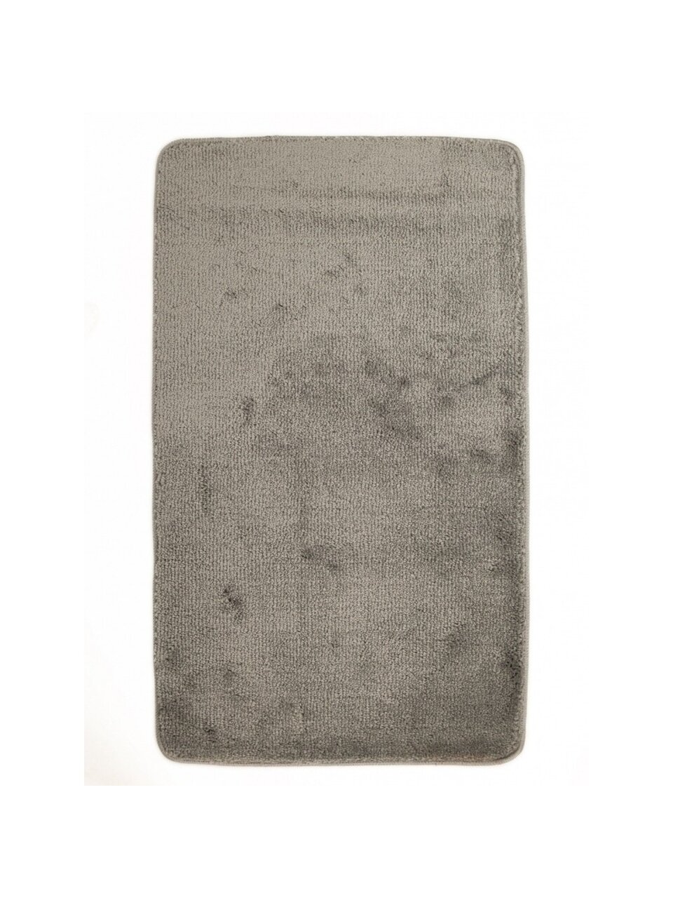 Прямоугольный коврик размером 60х100 см, без рисунка, в универсальном сером цвете — оптимален для стандартных и компактных ванных комнат.