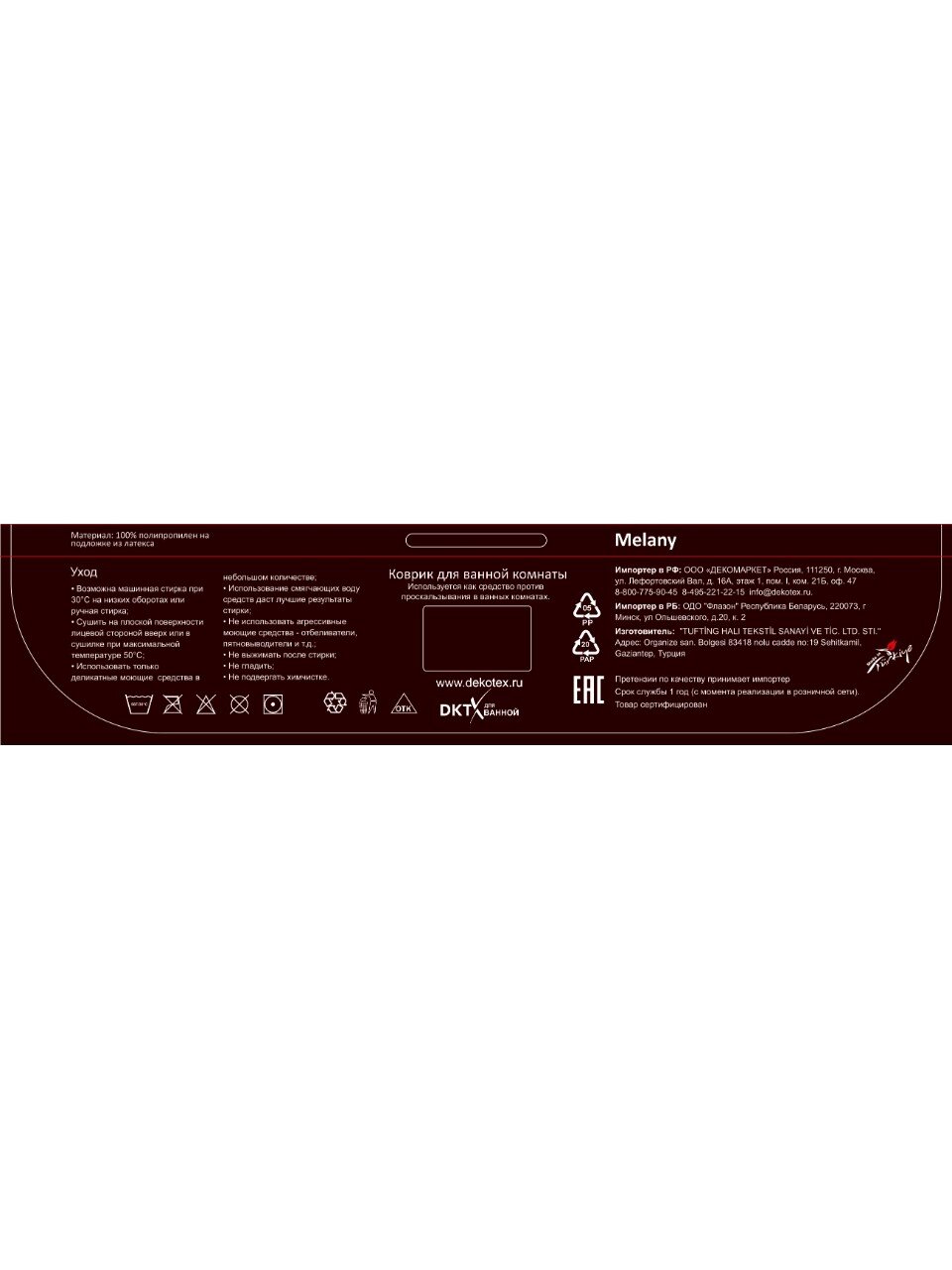 В наборе два коврика: большой — 60х100 см, малый — 50х60 см, толщина ворса — 20 мм. Это оптимальные размеры для стандартной ванной и туалета.