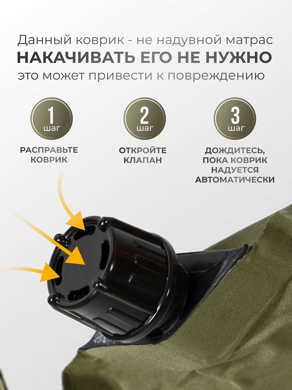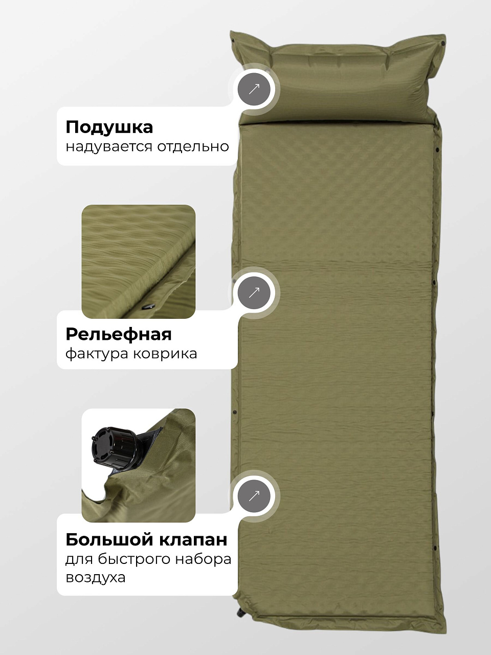 Самонадувающийся коврик 180х65х5 см – практичное решение для комфортного отдыха на природе, даче или в путешествии. Легко взять с собой на пикник, кемпинг или рыбалку. Благодаря компактному размеру и легкости, коврик не займет много места в багажнике автомобиля или рюкзаке, а его стильный цвет хаки гармонично впишется в окружающую природу. Коврик сочетает в себе функции каремата, матраса и туристического коврика, что делает его универсальным аксессуаром для активного образа жизни. Современная самонадувающаяся конструкция позволяет быстро подготовить место для сна или отдыха без лишних усилий и насоса – достаточно просто развернуть коврик, и он самостоятельно наполнится воздухом до оптимальной толщины 5 см, обеспечивая надежную защиту от холода и неровностей поверхности.