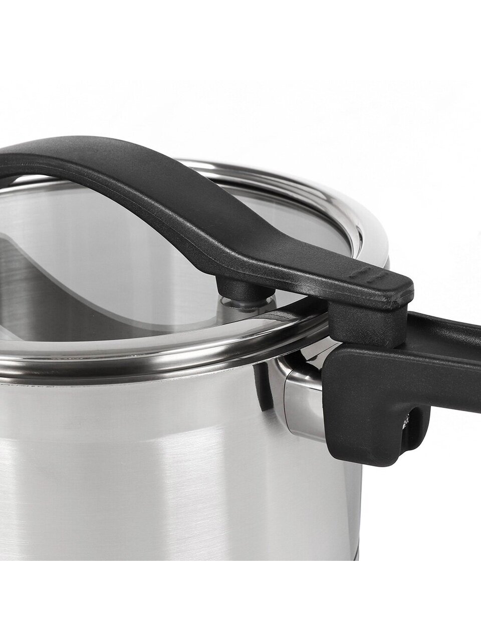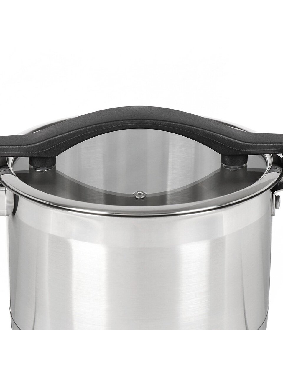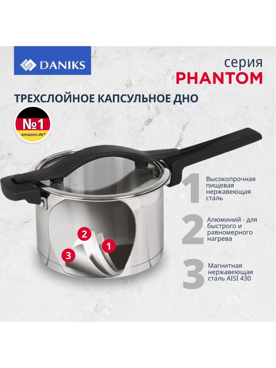 Заявленным качествам отвечает ковш Фантом из нержавеющей стали 18/10. Маркировка 18/10 считается самой лучшей, и ее активно используют на профессиональных кухнях. Сталь этой маркировки также называют пищевой. Регулировка ручки на крышке ковша отсутствует.