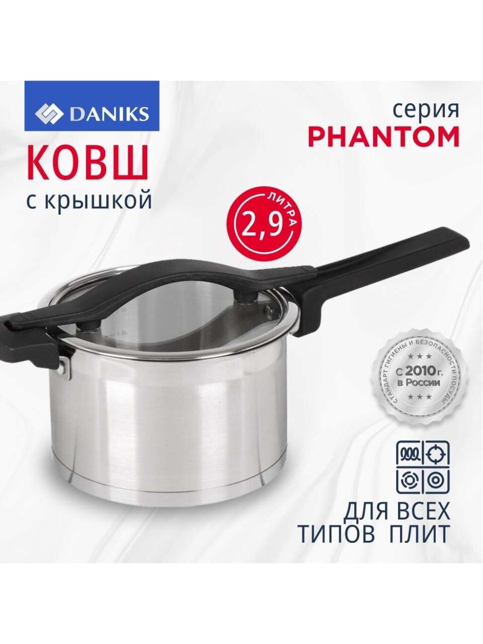 Вы можете приобрести «Ковш нержавеющая сталь, 2.9 л, крышка стекло, бакелитовая ручка, индукция, Daniks, Фантом, CW-B068-18S» и другие товары в нашем интернет-магазине в Белгороде по низким ценам и с бесплатным самовывозом.