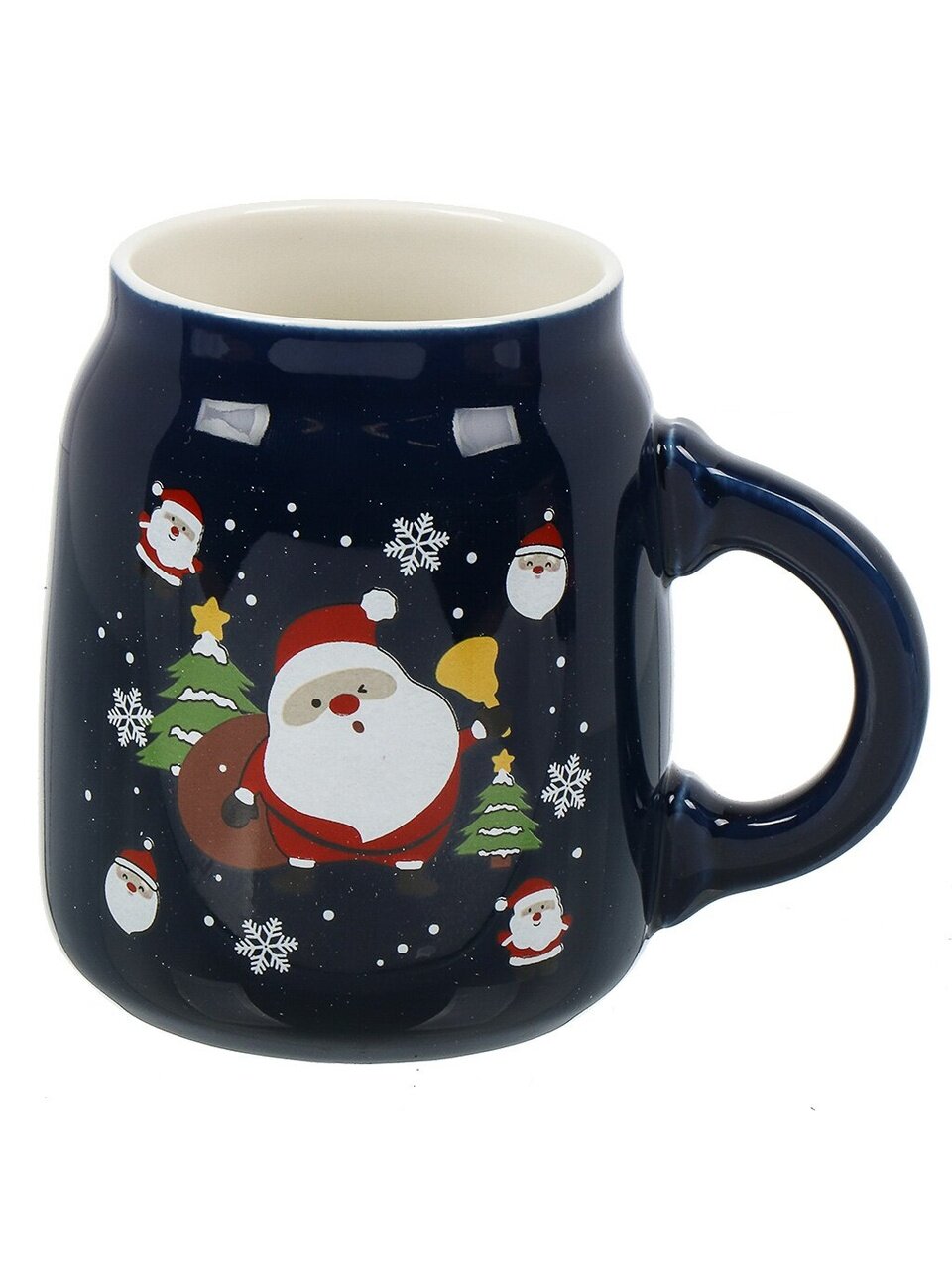 Да, кружка поставляется в подарочной упаковке, её дизайн универсален и праздничен — отличный вариант для новогоднего или рождественского подарка.