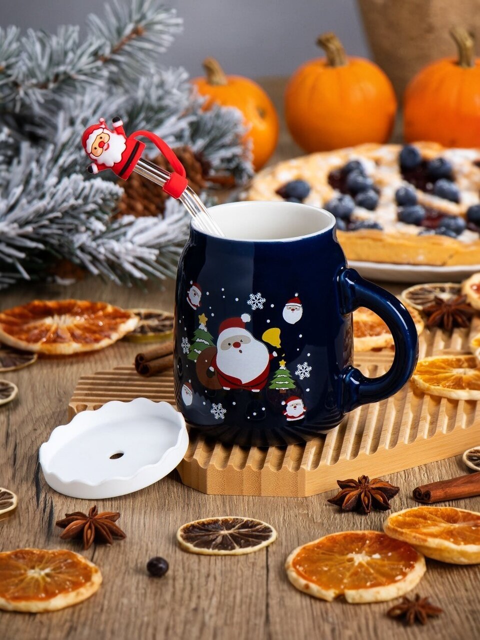 Керамическая кружка с крышкой и трубочкой 450 мл «Санта» — идеальный новогодний подарок: стильный дизайн, подарочная упаковка и удобство для дома и офиса.