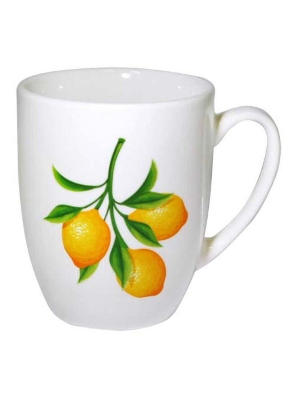 Кружка из фарфора 360 мл «Лимоны» от МФК — стильный выбор для дома и офиса: удобно держать, подходит для СВЧ и посудомоечной машины, свежий фруктовый дизайн.