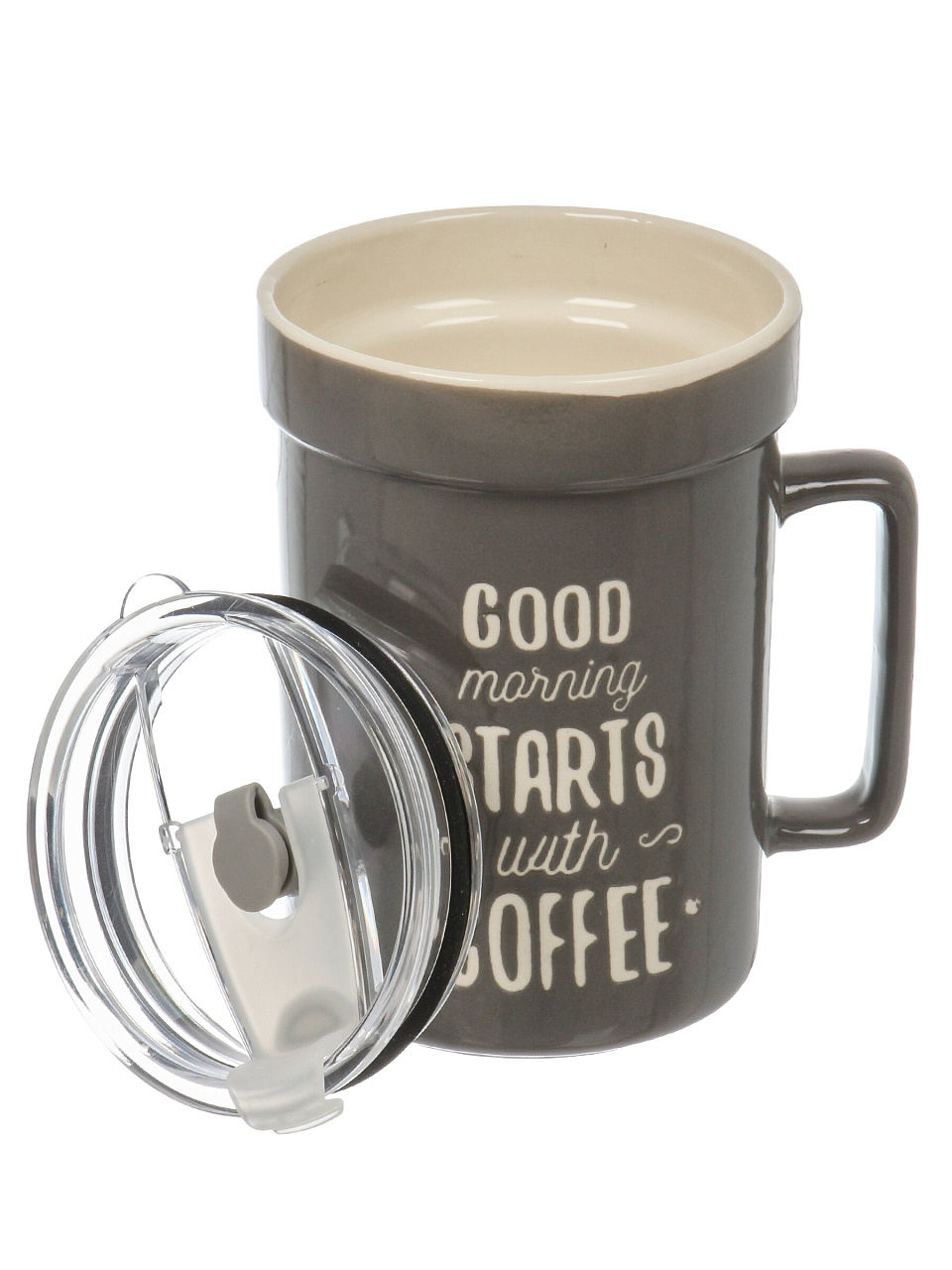 - Уникальный дизайн с надписью «Утро начинается с кофе» — вдохновляющий старт дня.