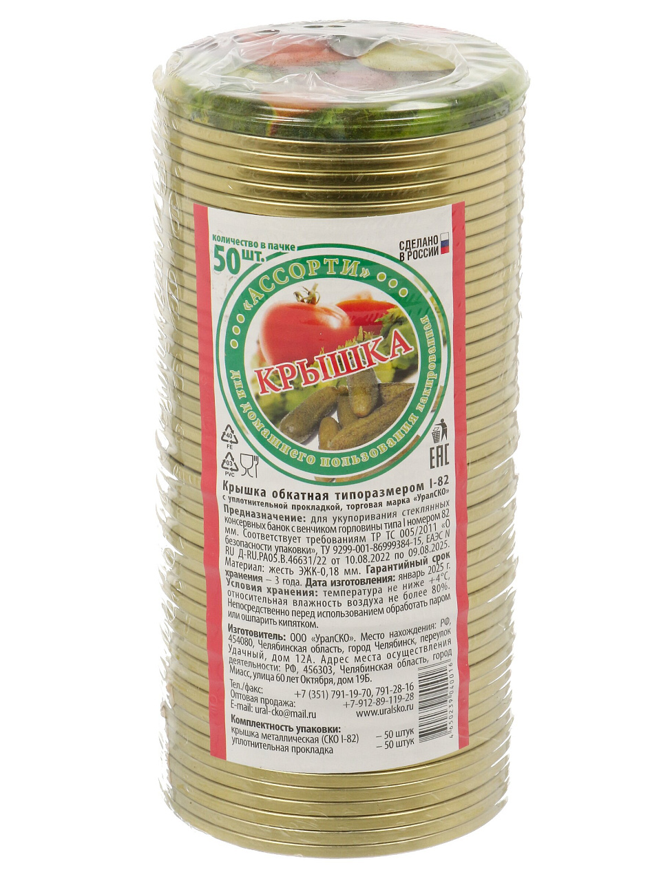 Диаметр крышек — 82 мм, это универсальный размер для большинства стеклянных банок (0,5 л, 1 л, 3 л). Подходят для домашнего и промышленного консервирования.