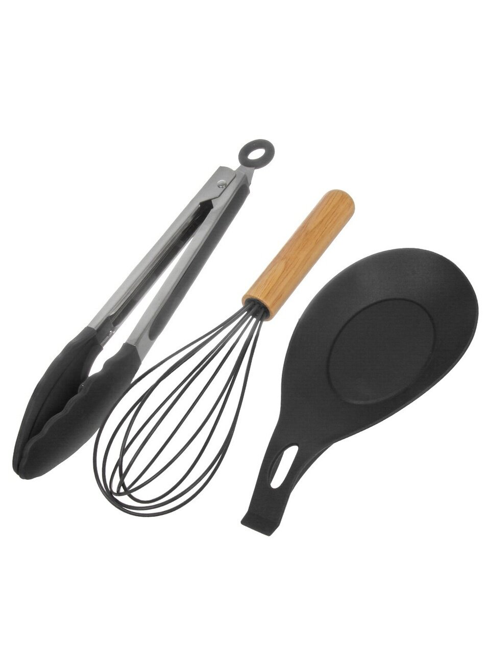 Набор кухонных принадлежностей 14 предметов Daniks Y4-9561 – стильное и практичное решение для современной кухни. Универсальный черный цвет гармонично впишется в любой интерьер, придавая рабочей зоне аккуратный и современный вид. Функциональный комплект включает необходимые аксессуары для приготовления и сервировки: для мяса, спагетти, взбивания, компота, снятия пены и кулинарных шедевров. Прочные рабочие части выполнены из силикона, который подходит для антипригарных покрытий, не царапает посуду, а рукоятки из бамбука и пластика обеспечивают комфорт и надежный хват.