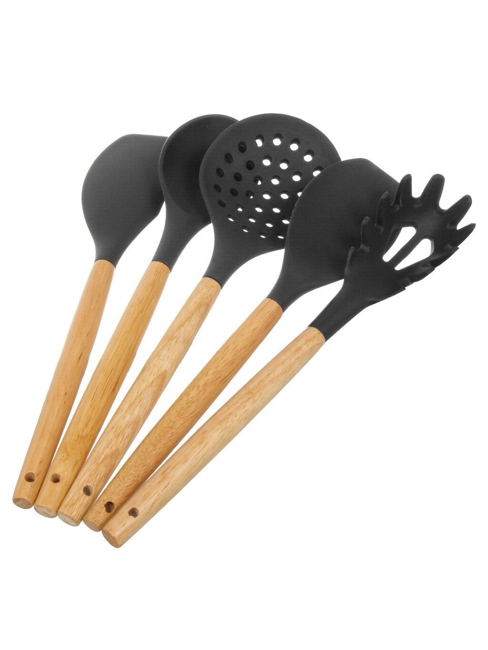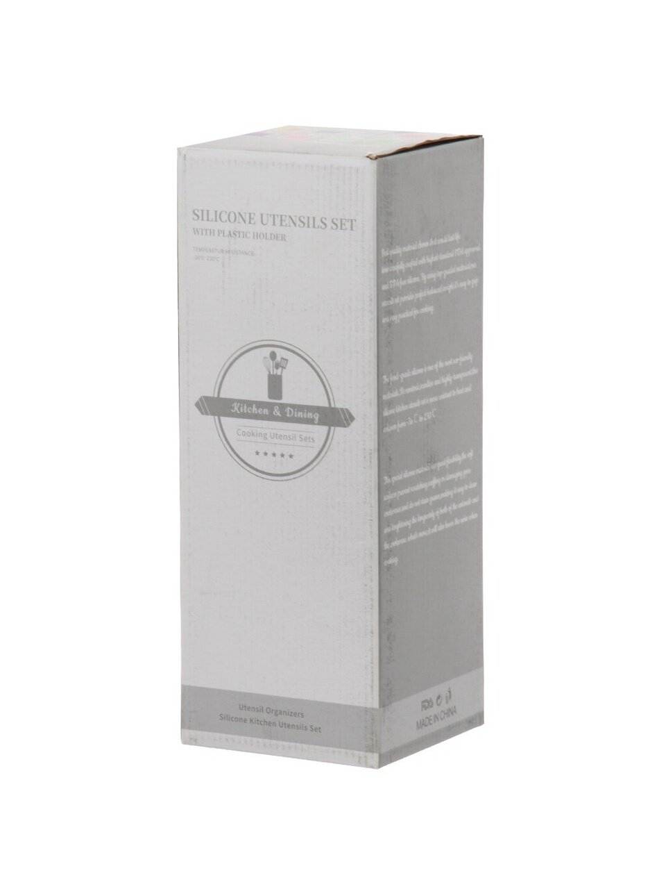 В комплекте предусмотрен удобный пластиковый стакан-подставка – аксессуары всегда под рукой и организованы. Благодаря подвесной конструкции легко поддерживать порядок на кухне, а аксессуары быстро сохнут. Силикон не впитывает запахи и легко очищается, а натуральный бамбук добавляет экологичности и эстетики.