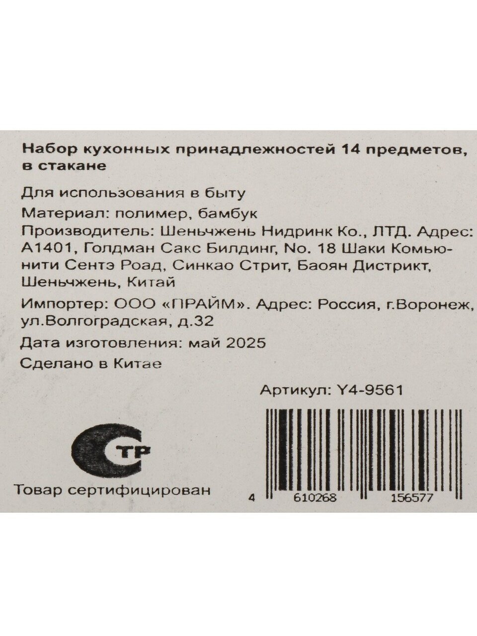 Вы можете приобрести «Набор кухонных принадлежностей 14 предметов, силикон, бамбук, в стакане, черный, Daniks, Y4-9561» и другие товары в нашем интернет-магазине в Смоленске по низким ценам и с бесплатным самовывозом.