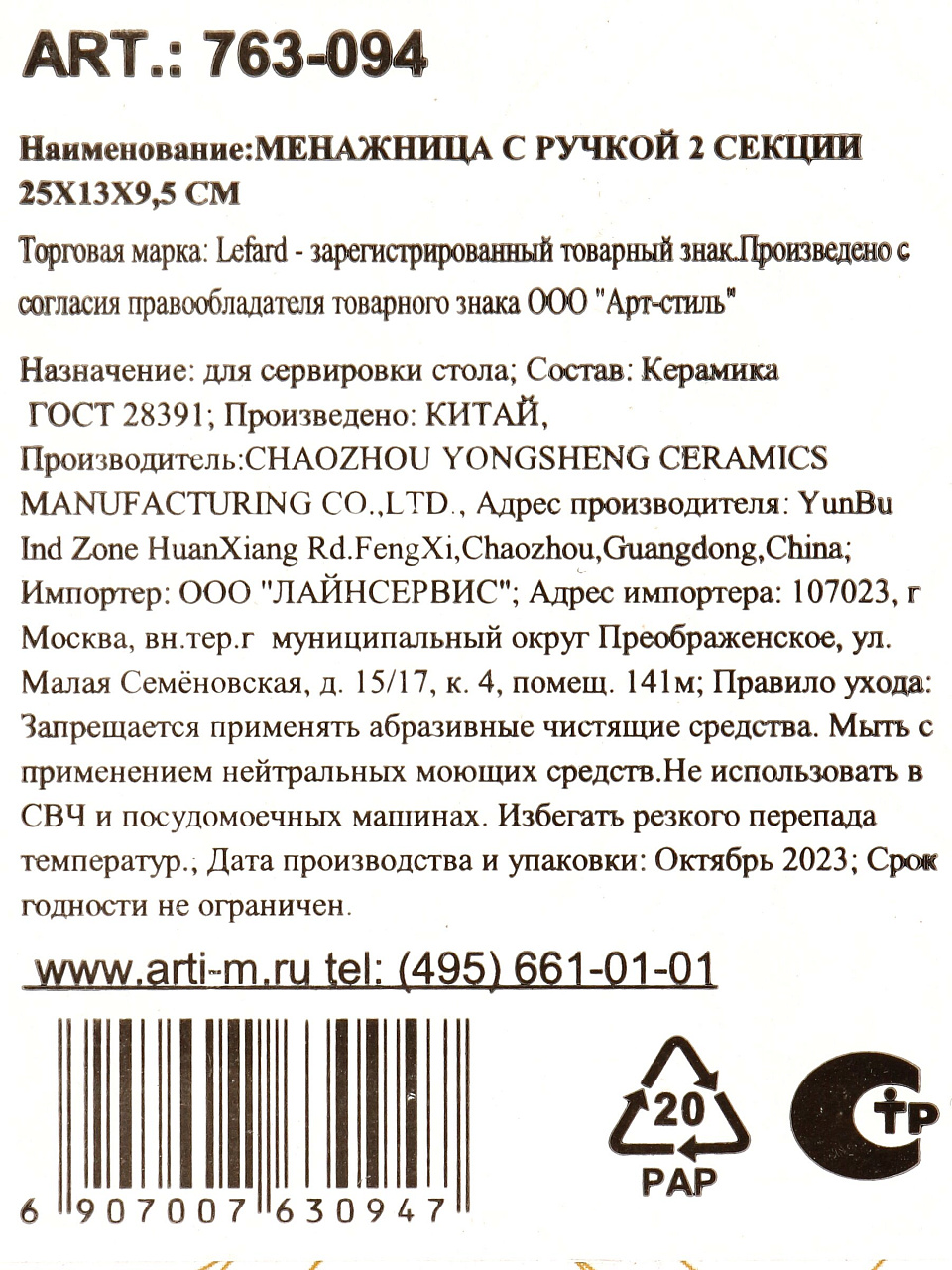 В отличие от пластиковых и стеклянных аналогов, керамика Lefard более устойчива к царапинам, не впитывает запахи и проста в уходе. Часто спрашивают: «Подходит ли менажница для горячих закусок?» — да, керамика выдерживает высокие температуры, но не рекомендуется использовать в духовке или микроволновке. Как использовать менажницу с ручкой? Просто наполните каждую секцию разными блюдами и легко переносите на стол.