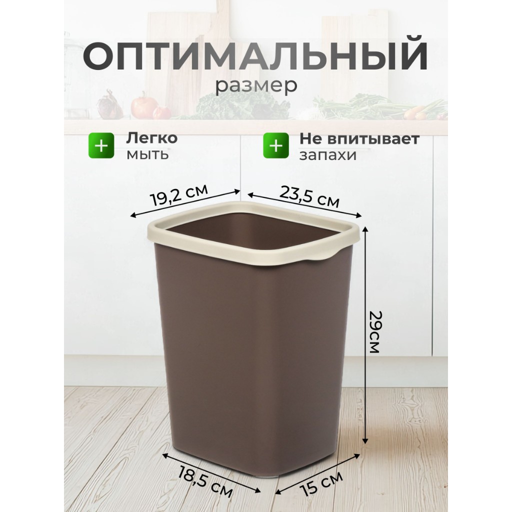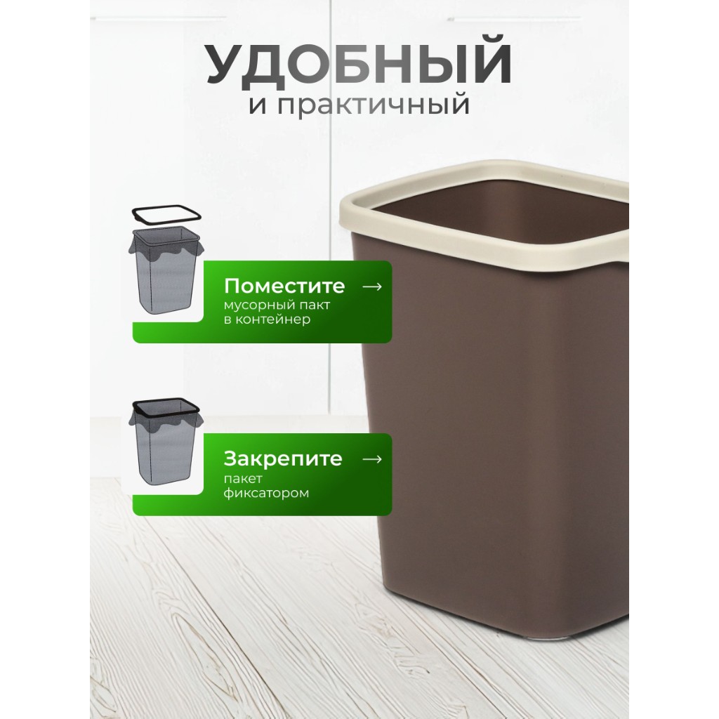 Мусорное ведро с фиксатором - это удобный и практичный аксессуар для любого дома или офиса. Стильная урна универсальной прямоугольной формы и практичного шоколадного цвета с контрастным фиксатором подойдет под любой интерьер.