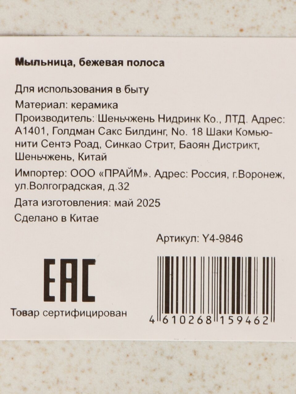 Мыльница настольная, керамика, бежевая полоса, Y4-9846