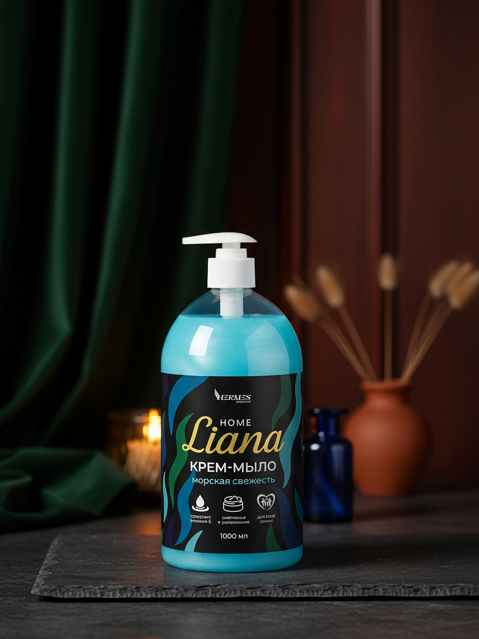 Крем-мыло жидкое Hermes Industry Home, Морская свежесть, 1 л — освежающее очищение для всей семьи: забота о коже, экономия и стильный объем для дома и дачи.
