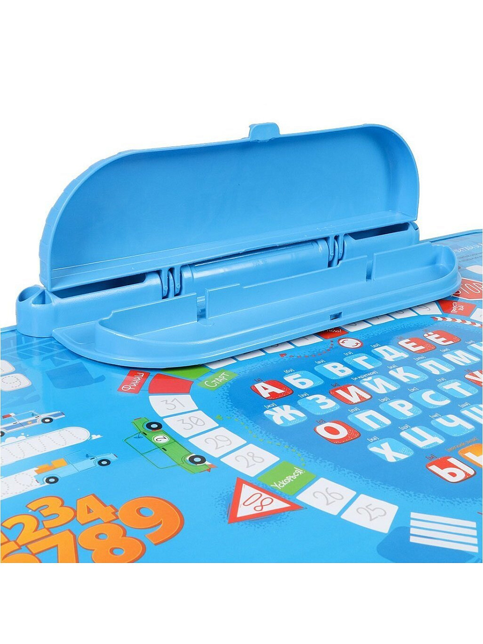 Комплект складной. Подходит для кормления, игр и обучения. Поверхность столешницы ламинированная с нанесением ярких познавательных рисунков. На поверхности стола можно рисовать маркером на водной основе. Поверхность стула: ткань с водоотталкивающей пропиткой