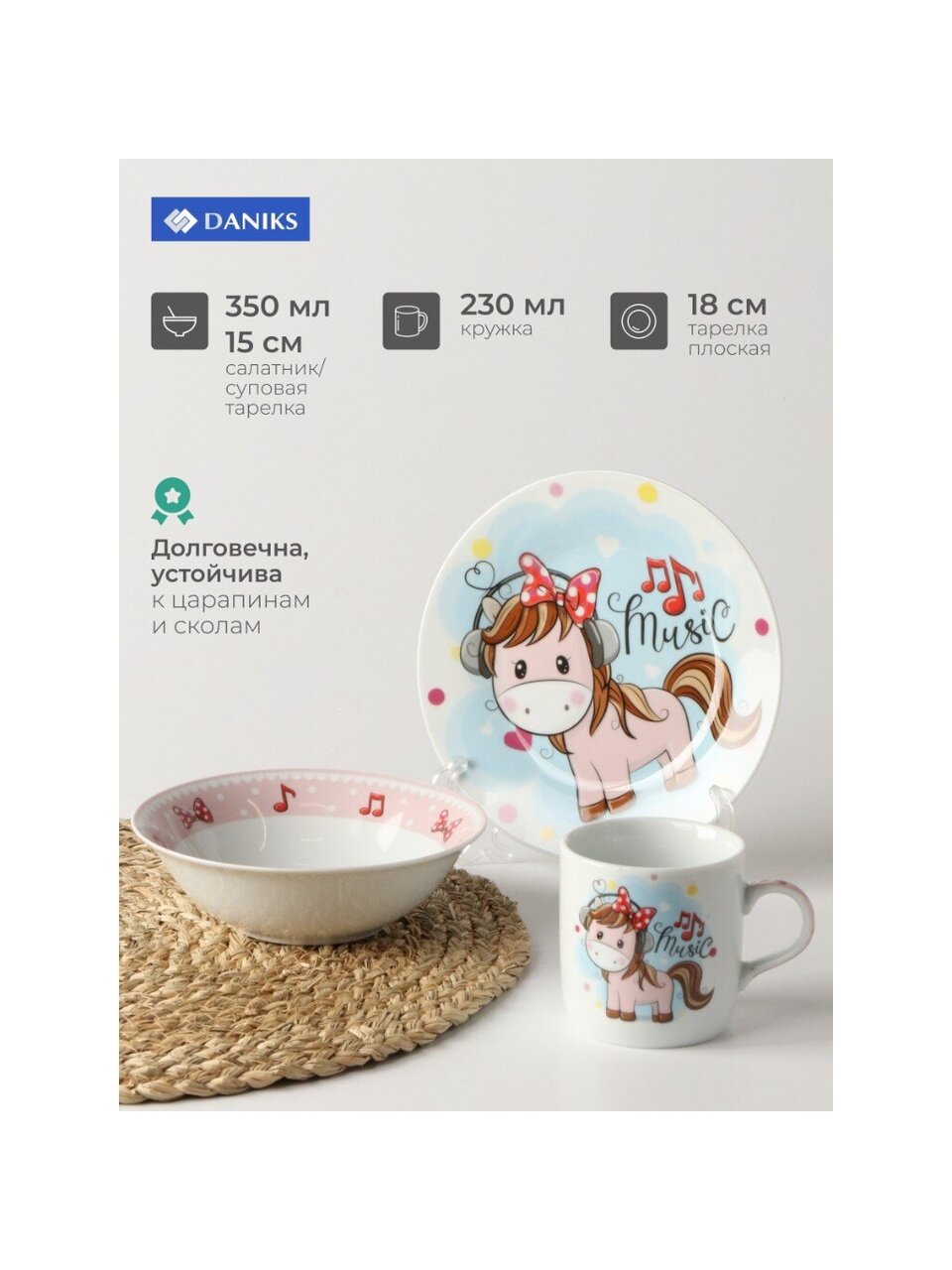 Вы можете приобрести «Набор посуды керамика, 3 шт, Пони, тарелка 18см, салатник 15см/350мл, кружка 230мл, Daniks, C589» и другие товары в нашем интернет-магазине в Астрахани по низким ценам и с бесплатным самовывозом.