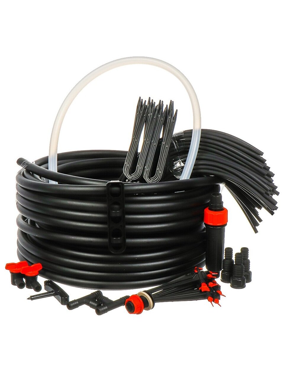 Набор для капельного полива с регулируемыми капельницами, от емкости, предназначен для автоматизации ухода за растениями и создания оптимальных условий для их роста на даче, в теплице или саду. Устройство обеспечивает эффективное распределение влаги сразу на 90 растений, что позволяет экономить время и силы, а также способствует значительному увеличению урожайности. Благодаря длине шланга 30 метров и возможности регулировки расхода воды, система идеально подходит для полива клубники, огурцов, помидоров и любых других культур, выращиваемых на грядках.