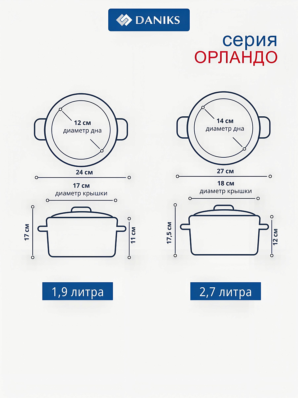 Какой объём кастрюль в наборе Daniks Орландо?