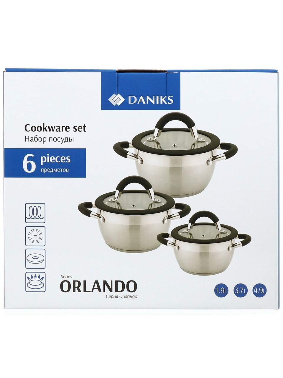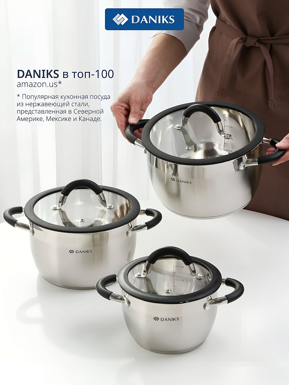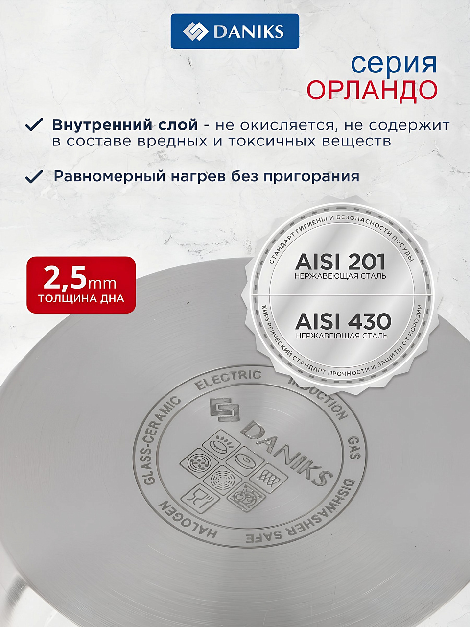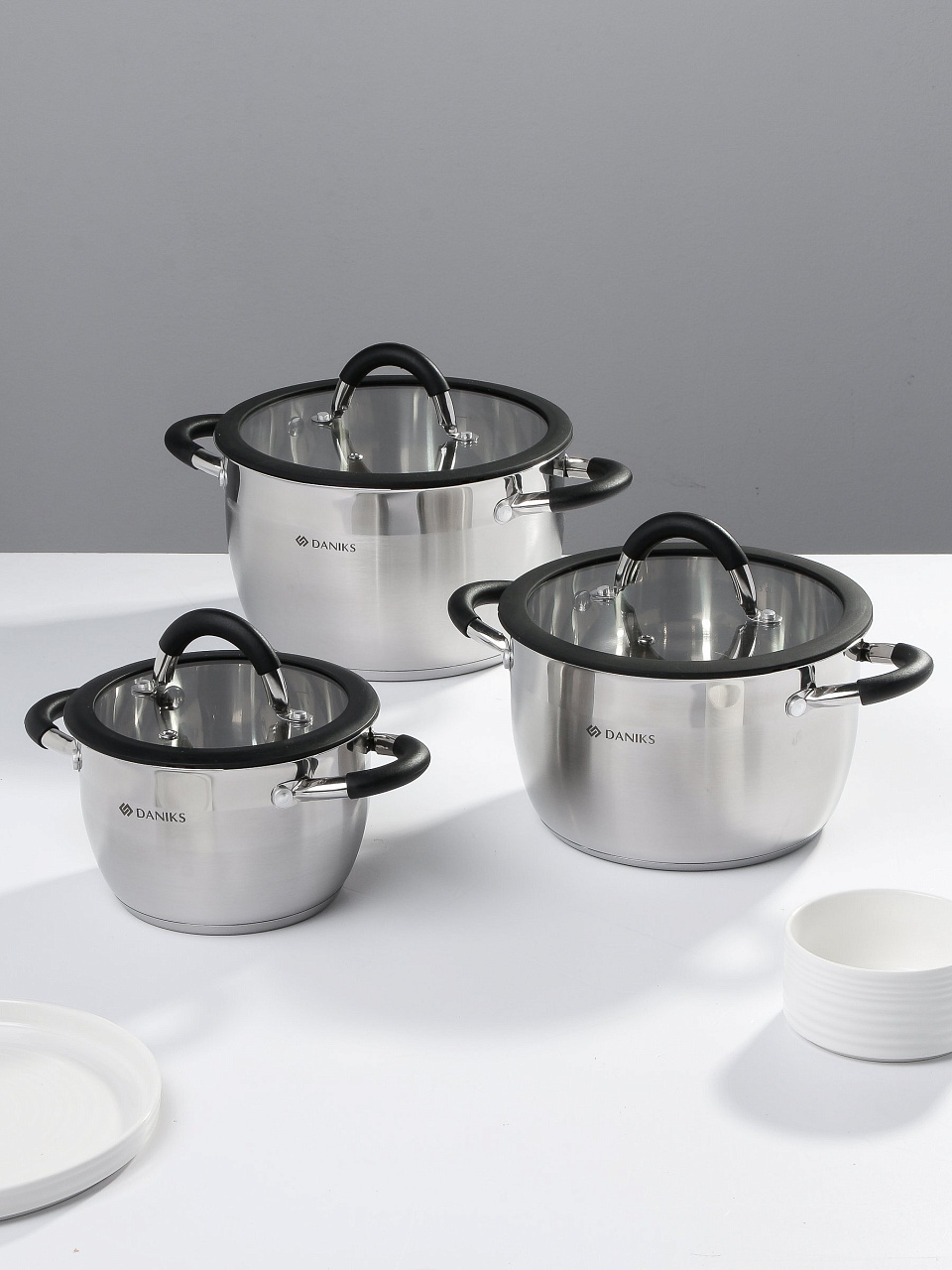 Набор кастрюль из нержавеющей стали Daniks Орландо 6 предметов: универсальное решение для индукции, дома, дачи и подарка — надёжно, долговечно, выгодно.