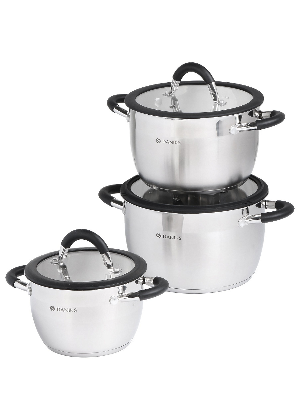 Набор кастрюль Daniks Орландо — это выгодное решение для тех, кто ищет, какую посуду выбрать для индукционной плиты или как купить недорого набор посуды для дома и дачи. Антикоррозийная нержавеющая сталь устойчива к деформации и легко очищается, а прозрачные крышки позволяют контролировать процесс приготовления без лишних усилий. Благодаря универсальному дизайну и трём разным объёмам, этот комплект отлично подходит для приготовления супов, гарниров и даже заготовок.