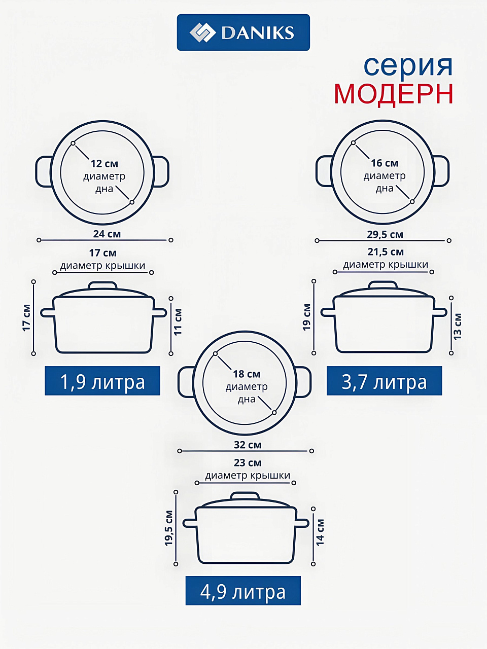 Преимущества покупки: быстрый нагрев, отсутствие антипригарного покрытия (без риска повреждения), лёгкий уход и универсальное применение. Закажите набор кастрюль Daniks Орландо сейчас — получите гарантию качества и выгодную цену.