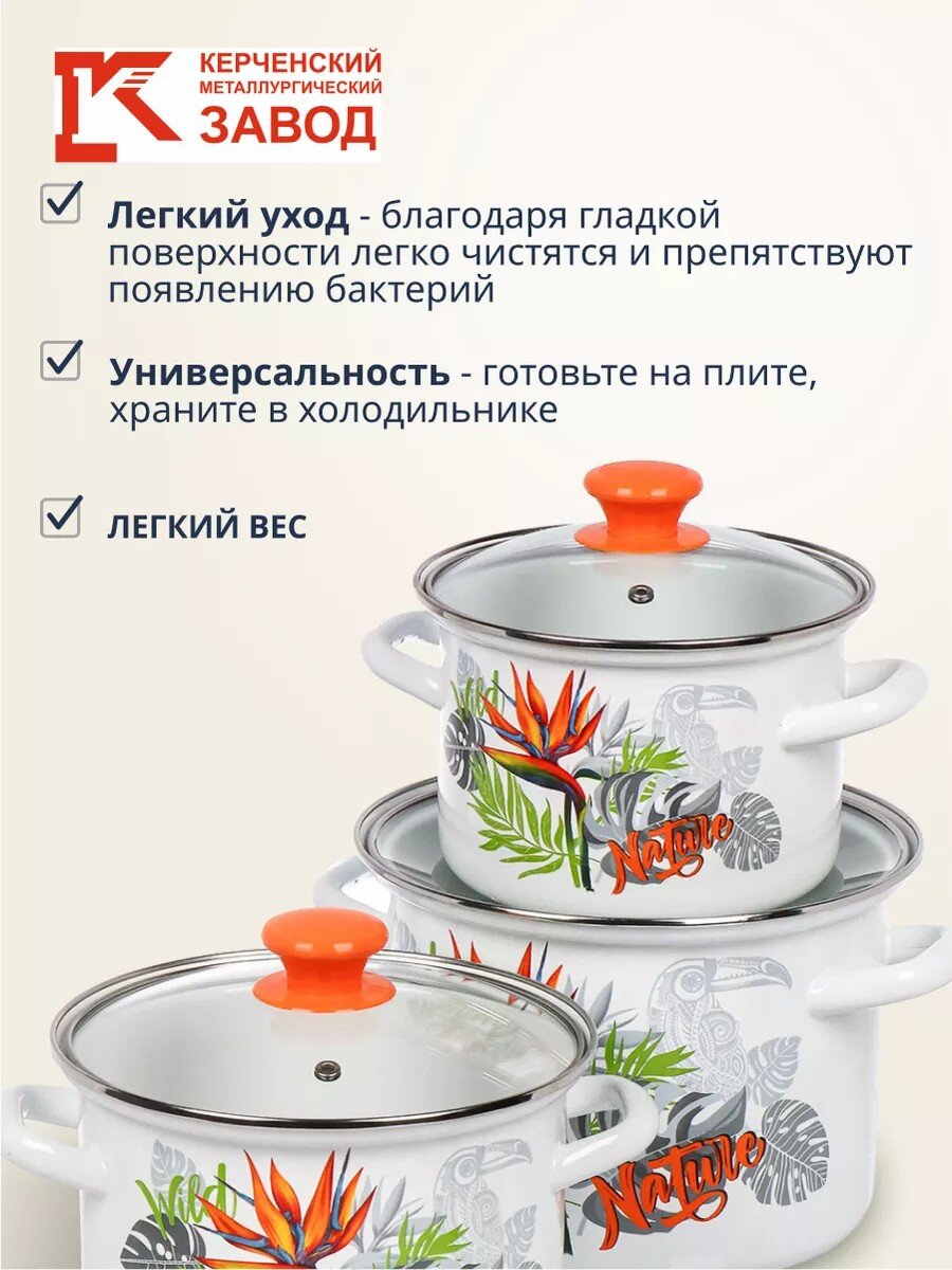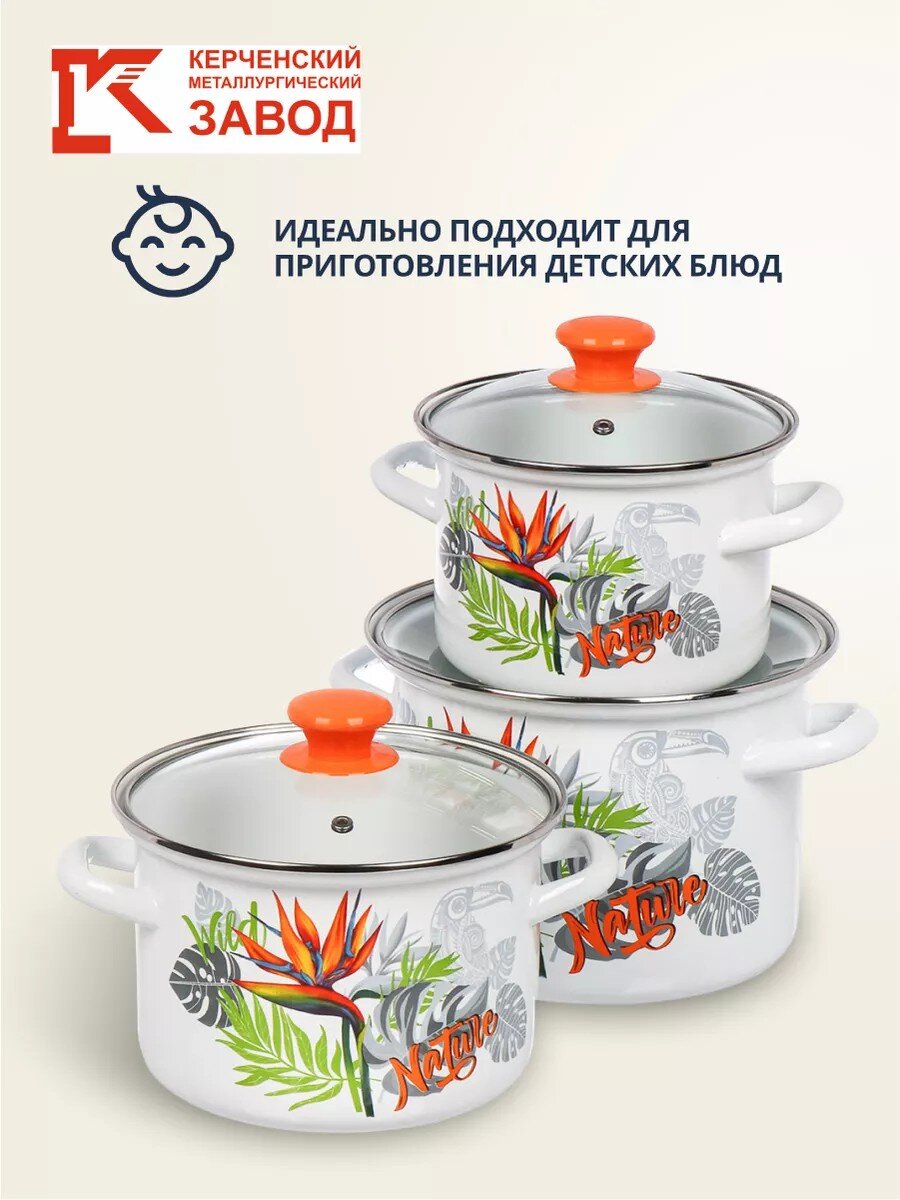 Набор эмалированных кастрюль 6 предметов (2.4, 3.4, 5 л) для индукции — универсальное решение для дома и дачи, долговечность и стиль от Керченского завода.