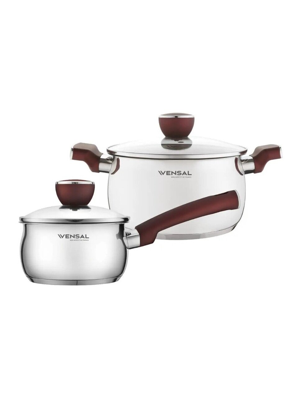 Набор посуды Vensal из нержавеющей стали, 4 предмета: долговечность, безопасность для здоровья, идеальный выбор для индукционных плит и подарка.