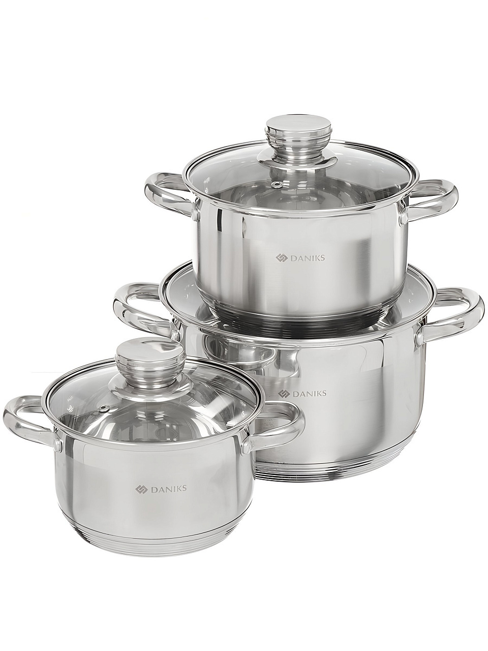 Набор кастрюль из нержавеющей стали Daniks 6 предметов: универсальное решение для кухни и дачи, подходит для индукции, оптимальные объёмы 1.9/2.9/4.75 л