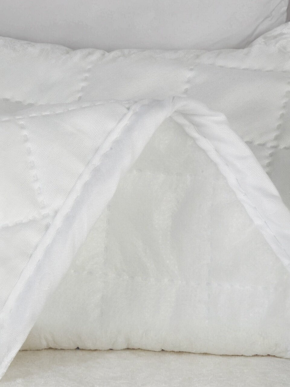 Внешний материал — 100% полиэфирное волокно. Наматрасник подходит для машинной стирки, быстро сохнет и сохраняет форму после многократного использования.