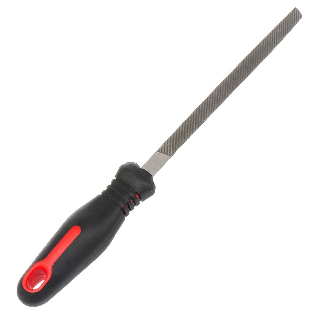 Трехгранный напильник используется при слесарных работах и мелком ремонте для опиливания и подгонки металлических деталей, зачистке клемм, обработке небольших отверстий или мелких пазов. Он имеет треугольное сечение, что обеспечивает удобство работы в труднодоступных местах. Пластиковая рукоятка обеспечивает комфорт при удержании инструмента и предотвращает скольжение в руке. Трехгранный напильник является необходимым инструментом в наборе домашнего мастера или профессионального слесаря.