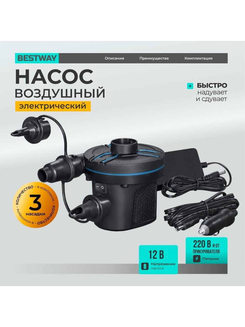 Вы можете приобрести «Насос воздушный электрический, 12 В, 3 насадки, 12 В постоянного тока, Bestway, 62255» и другие товары в нашем интернет-магазине в Курске по низким ценам и с бесплатным самовывозом.