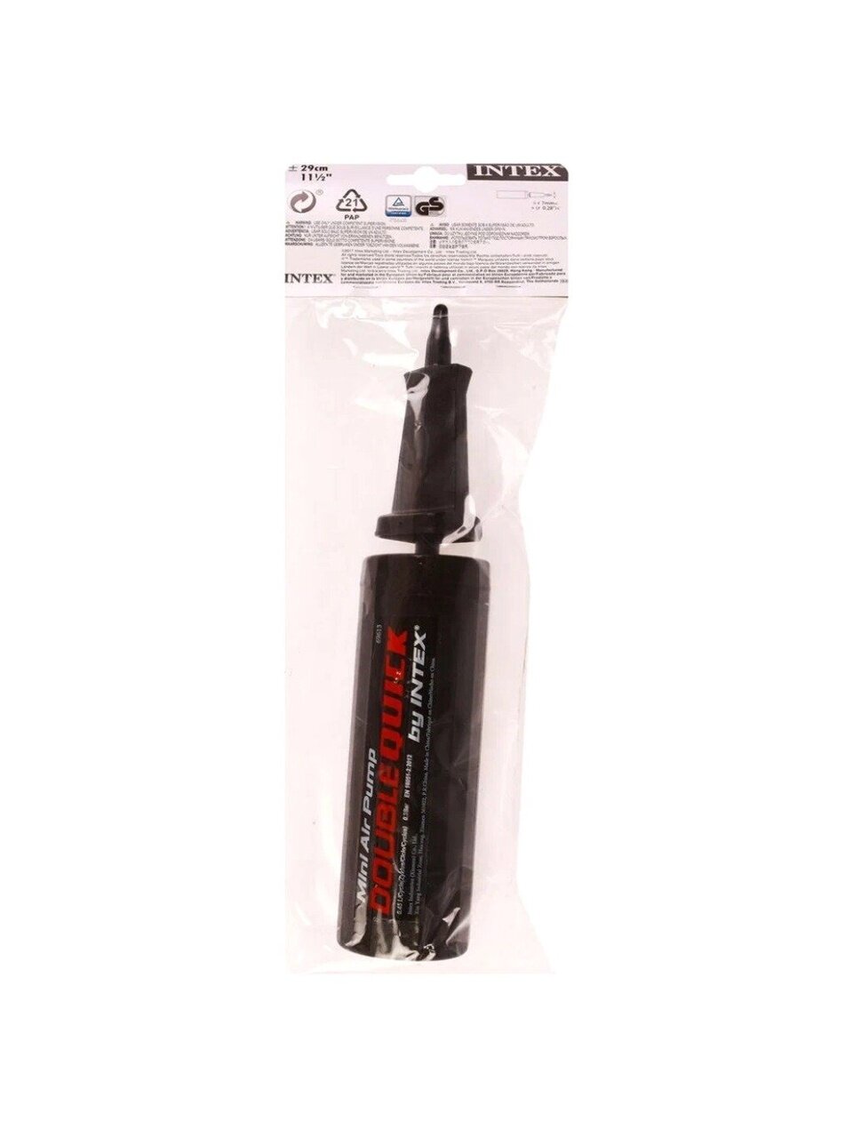 Ручной мини-насос Intex Double Quick 69613 представляет собой насос быстрого накачивания, подходит для надувания всех видов небольших по размеру надувных изделий: детских игрушек, мячей, кругов для плавания, нарукавников, жилетов. Для его работы не требуется электричество, поэтому он очень удобен в поездках за город, на пикники и др.