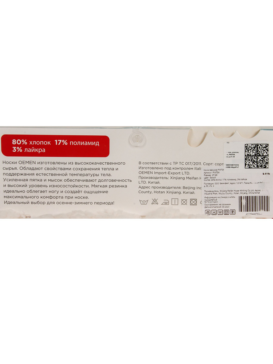 Вы можете приобрести «Носки для женщин, хлопок, Oemen, белые, р. 27-29, PW784» и другие товары в нашем интернет-магазине в Иваново по низким ценам и с бесплатным самовывозом.