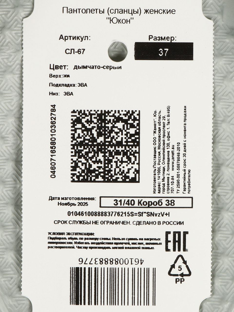 Вы можете приобрести «Обувь пляжная жен, ЭВА, дымчато-серый, р.37, Юкон, СЛ-67» и другие товары в нашем интернет-магазине в Обнинске по низким ценам и с бесплатным самовывозом.