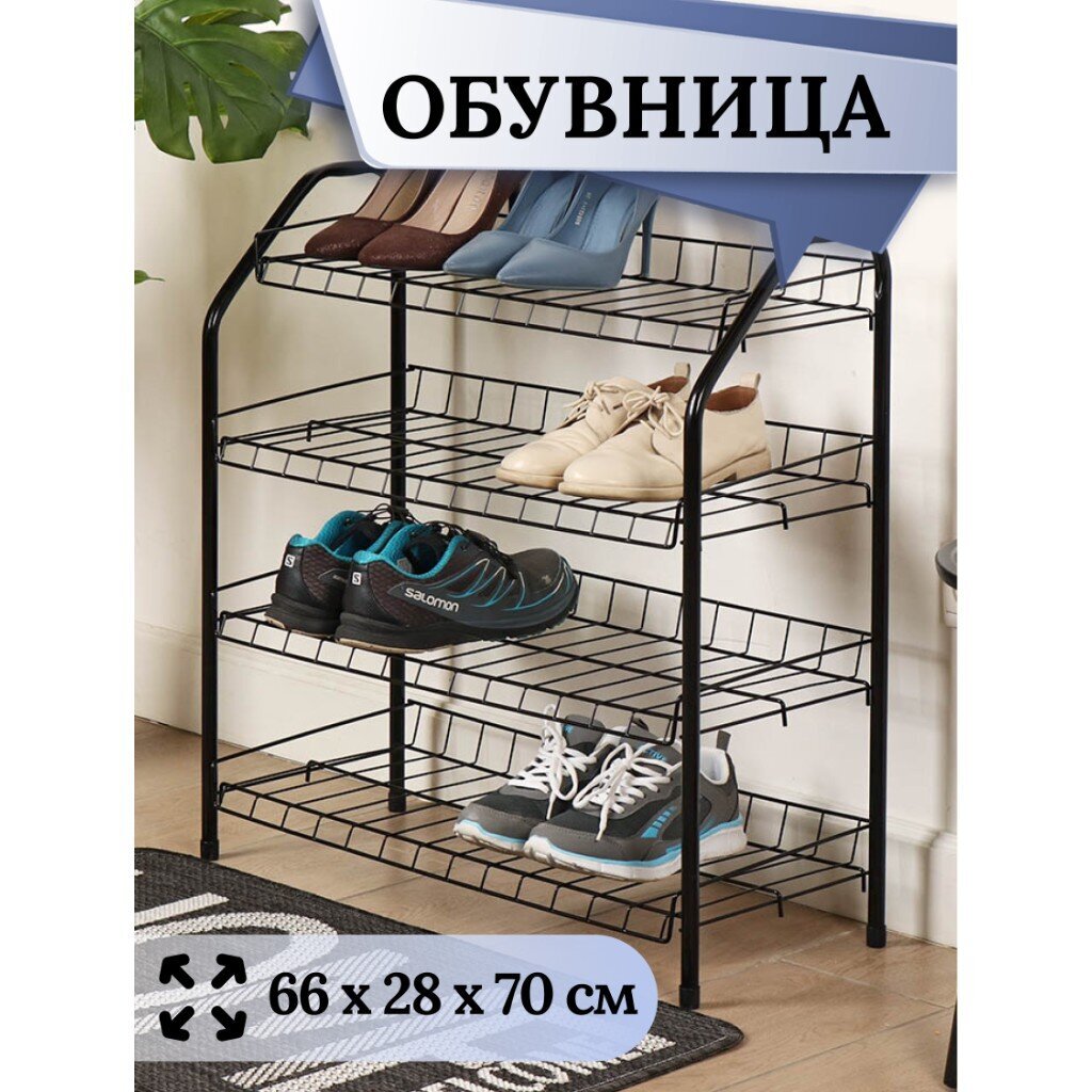 Вы можете приобрести «Полка для обуви, металл, 4 секции, 66х28х70 см, разборная, черная, Nika, ЭТ1/Ч» и другие товары в нашем интернет-магазине в Ельце по низким ценам и с бесплатным самовывозом.