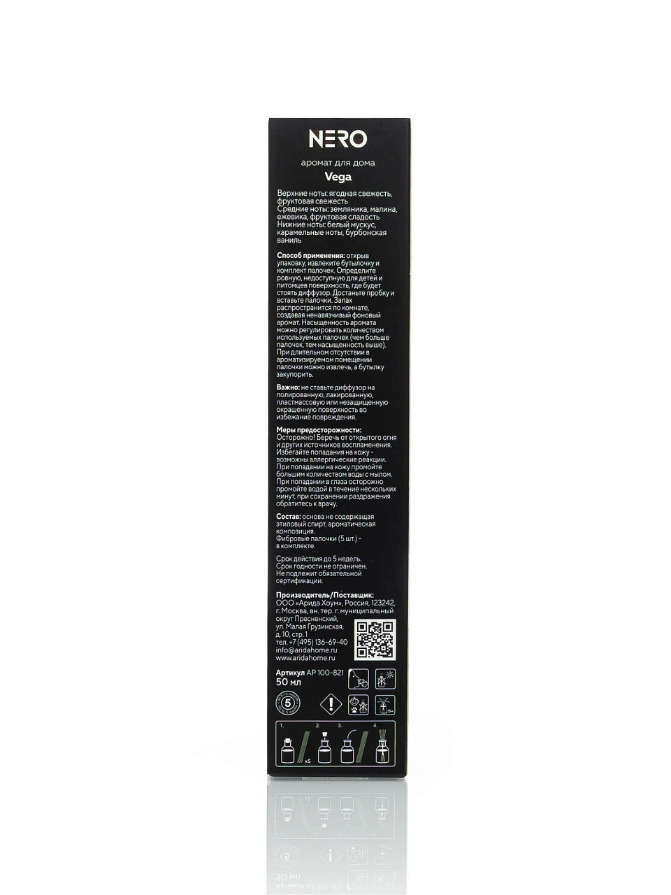 Аромадиффузор Arida Home Nero Vega — это стильное интерьерное решение для нейтрализации неприятных запахов и создания атмосферы уюта. Благодаря ягодным и фруктовым нотам, плавно переходящим в карамельную сладость и бурбонскую ваниль, ароматизатор подходит для дома, офиса, дачи, а также станет отличным подарком. Минималистичный флакон гармонично впишется в любой интерьер, а компактный объём 50 мл оптимален для небольших помещений.
