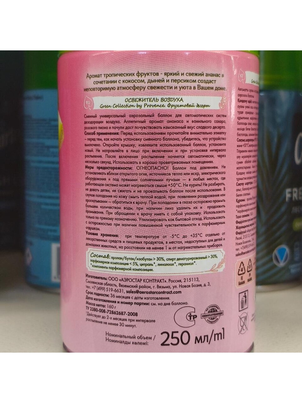 Вы можете приобрести «Освежитель воздуха Provence, 250 мл, Фруктовый десерт, сменный, для автоматического освежителя, сухое распыление, APR30» и другие товары в нашем интернет-магазине в Краснодаре по низким ценам и с бесплатным самовывозом.