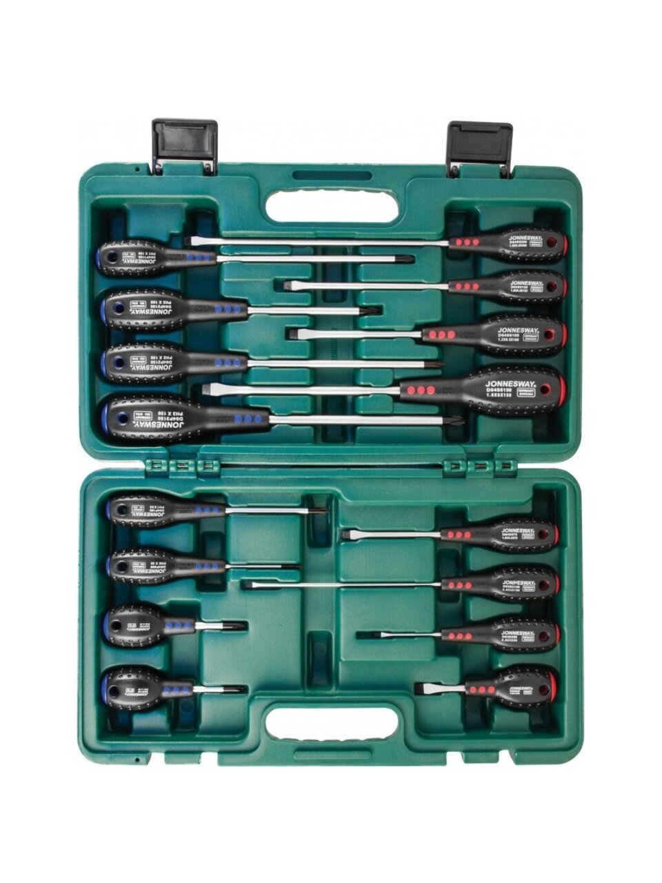 Профессиональный набор отверток 16 предметов Jonnesway Full Star D04PP16S – идеальный инструмент для дома, дачи, мастерской и гаража. Универсальный комплект создан для максимального удобства при выполнении различных монтажных и ремонтных работ, обеспечивая надежность и долговечность. В наборе представлены отвертки с плоским и крестовым наконечником (SL, PH), что позволяет справляться с широким спектром задач, от мелкого ремонта до сборки мебели и техники. Надежный кейс обеспечивает аккуратное хранение и легкую транспортировку, а эргономичные ручки из ABS-пластика гарантируют комфорт даже при длительном использовании.