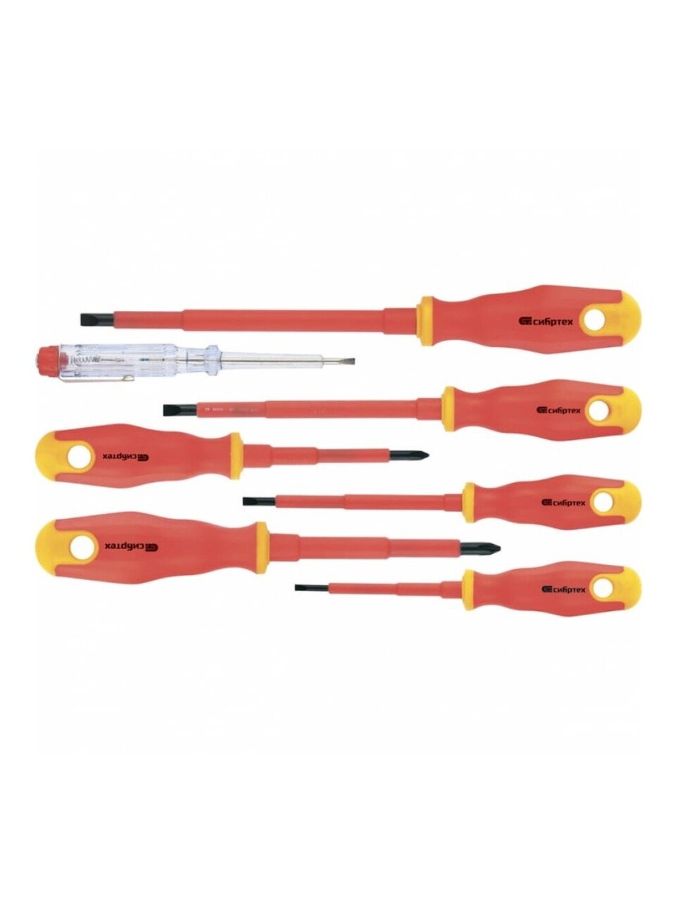 Вы можете приобрести «Отвертка диэлектрическая, 7 предметов, Сибртех, двухкомпонентный, CrV сталь, до 1000 В, тестер, 12936» и другие товары в нашем интернет-магазине в Казани по низким ценам и с бесплатным самовывозом.