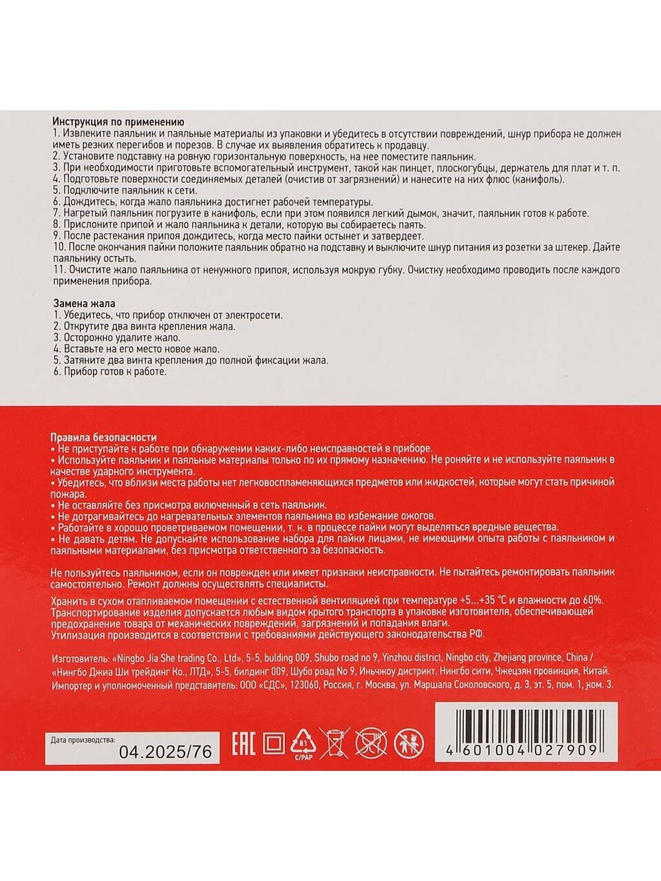 Набор для пайки сетевой Rexant №11 – идеальный выбор для домашних мастеров и любителей электроники, ценящих удобство, функциональность и надежность. Комплект включает все необходимое для качественной пайки: сетевой паяльник мощностью 30 Вт с эргономичной пластиковой рукояткой, подставку для безопасной работы, губку для удаления припоя, канифоль и припой. Такой набор станет незаменимым помощником при ремонте бытовой техники, создании электронных схем или мелком ремонте на даче.