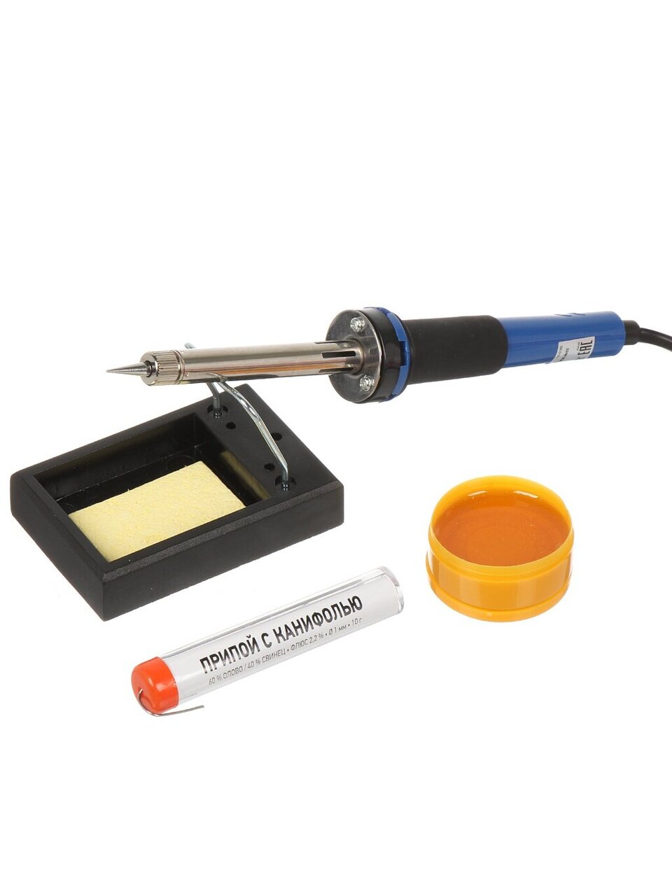 - полный комплект аксессуаров для пайки – паяльник, подставка, губка, канифоль, припой;