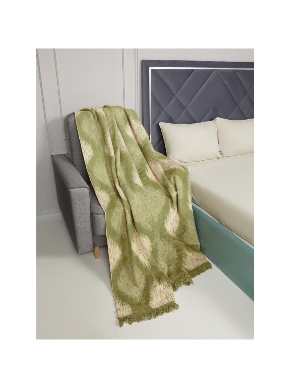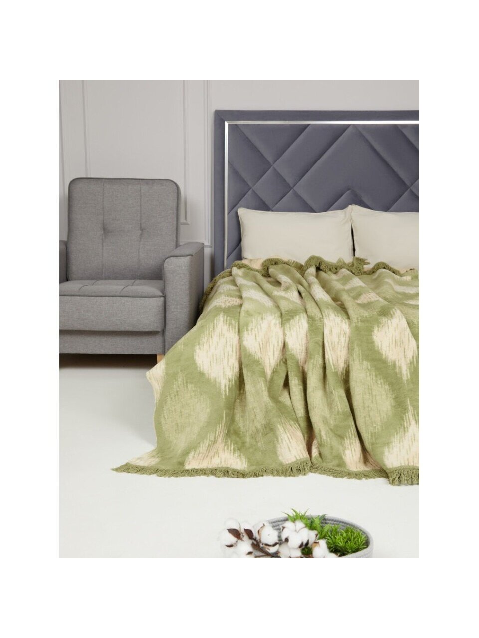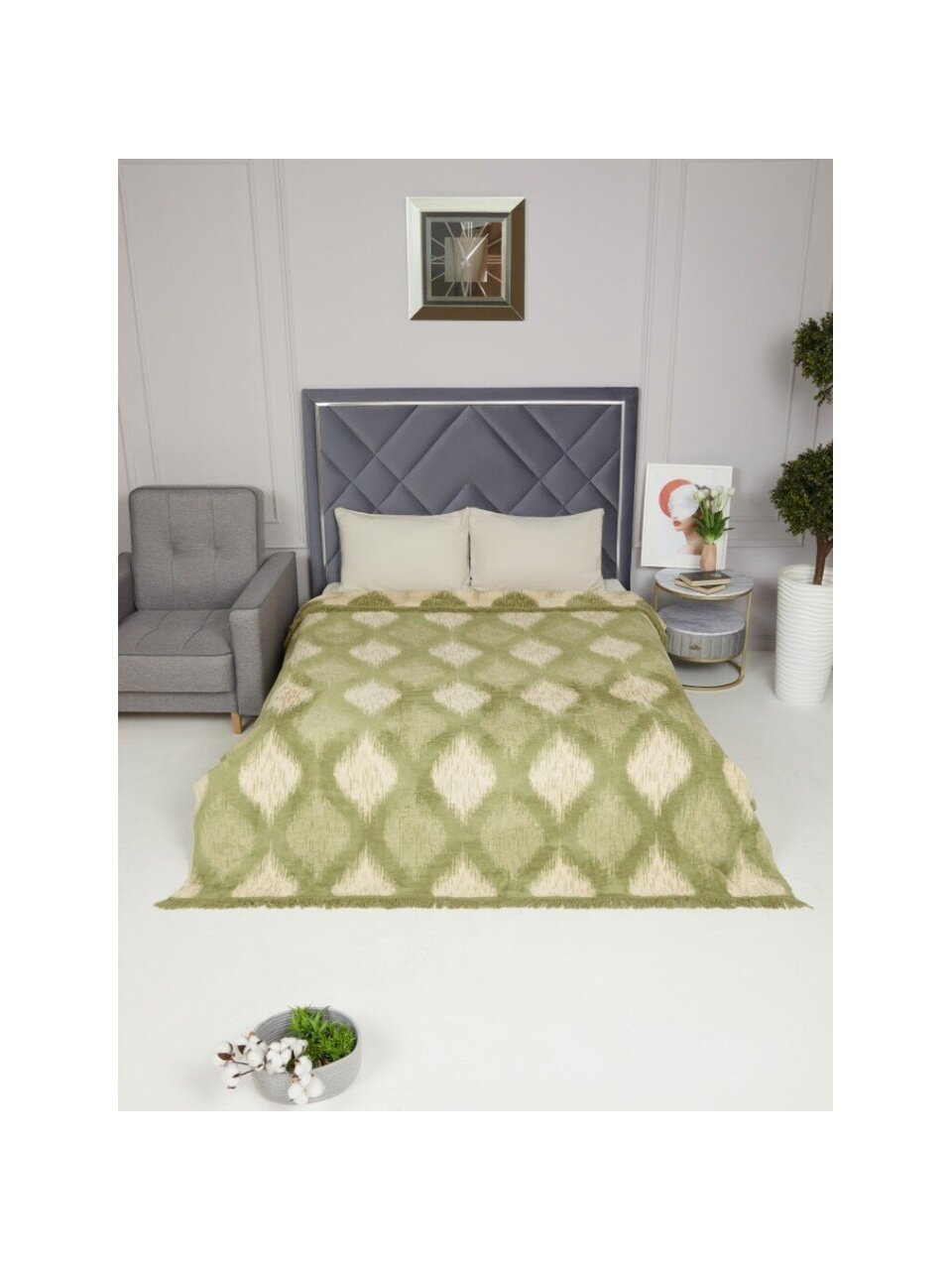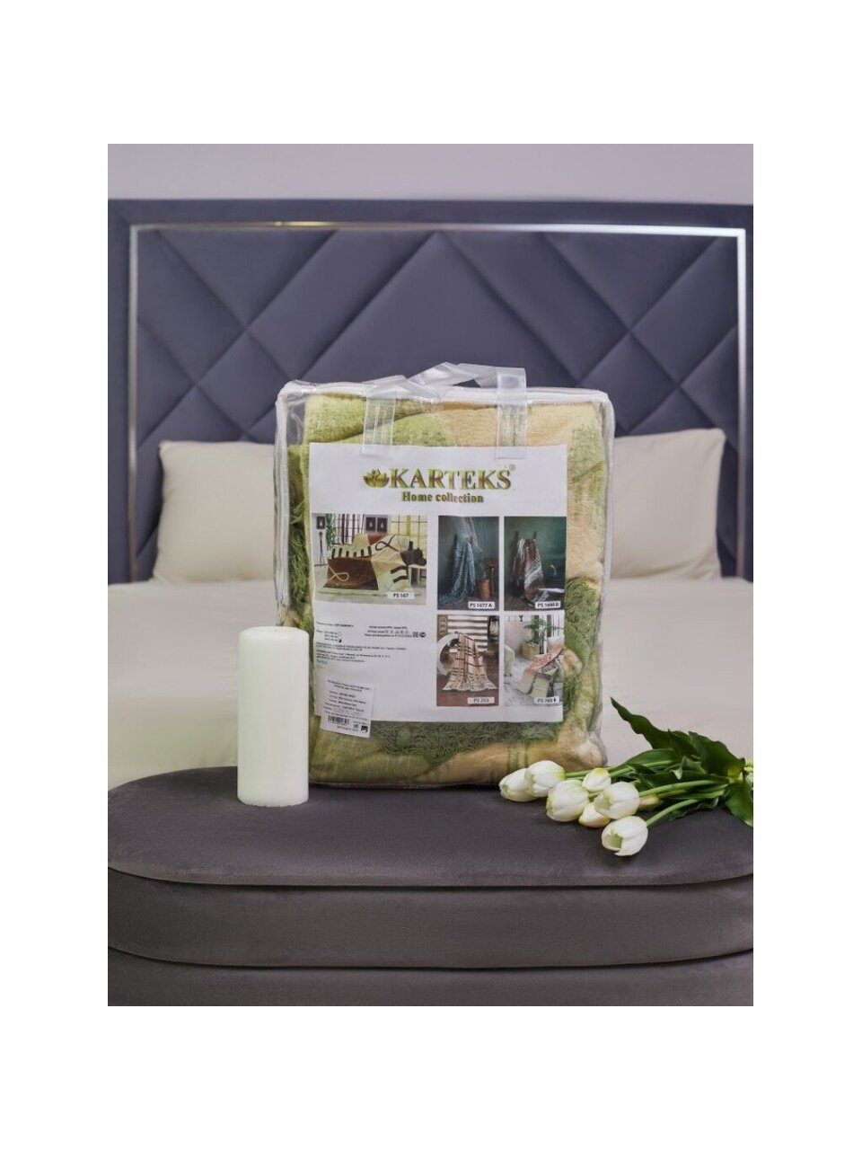 Плед евро 200x220 см Karteks Soft Komfort PS1680D: премиальный комфорт для дома и дачи, 60% хлопок, 40% акрил, стильный хаки, для уютных вечеров.