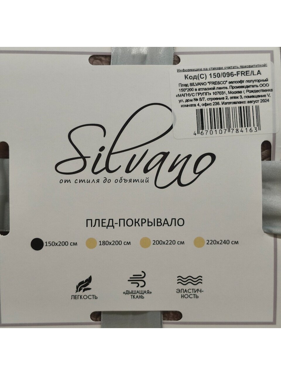 Закажите плед Silvano Fresco прямо сейчас — получите уют, стиль и практичность по выгодной цене. Гарантируем быструю доставку и оригинальное качество товара.